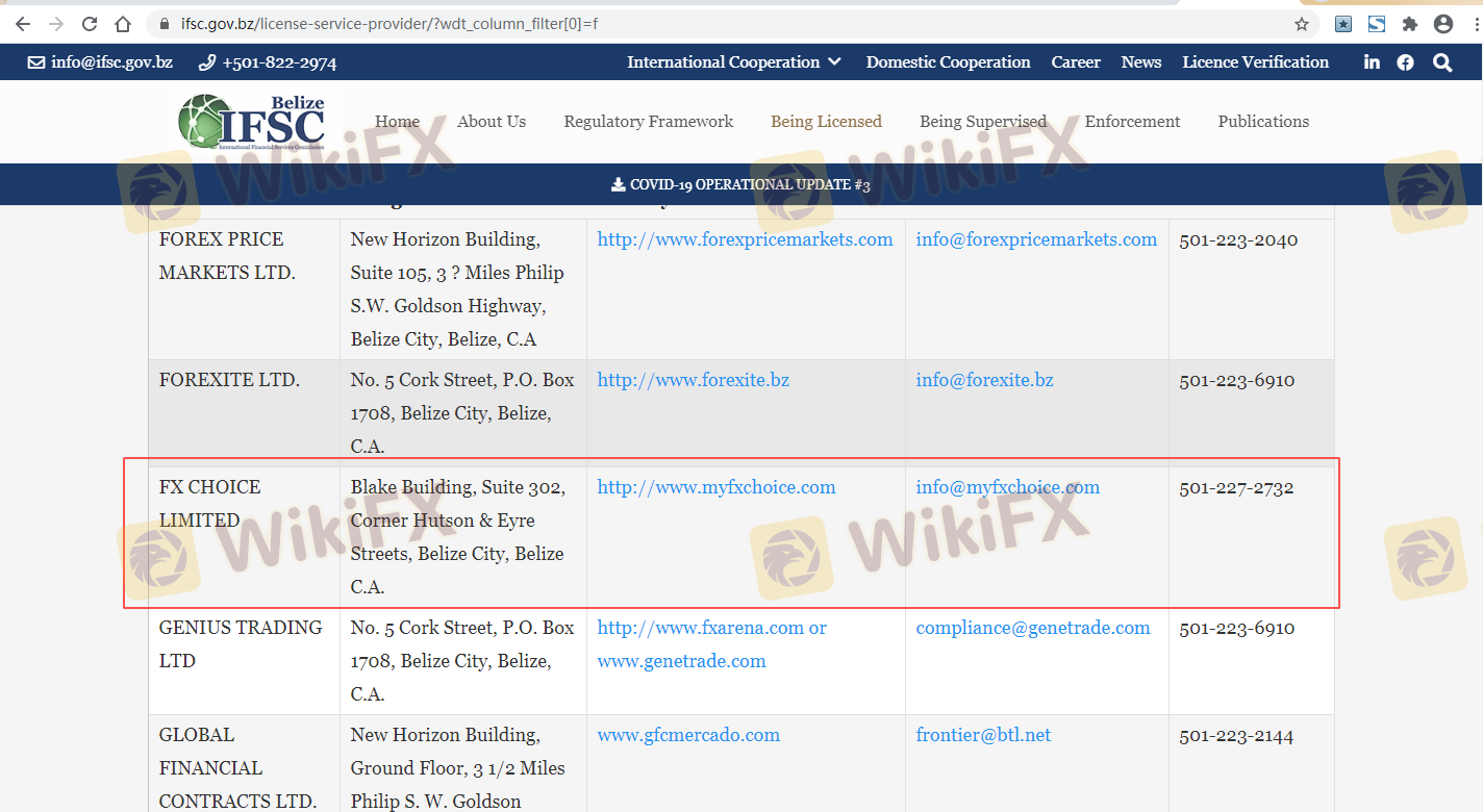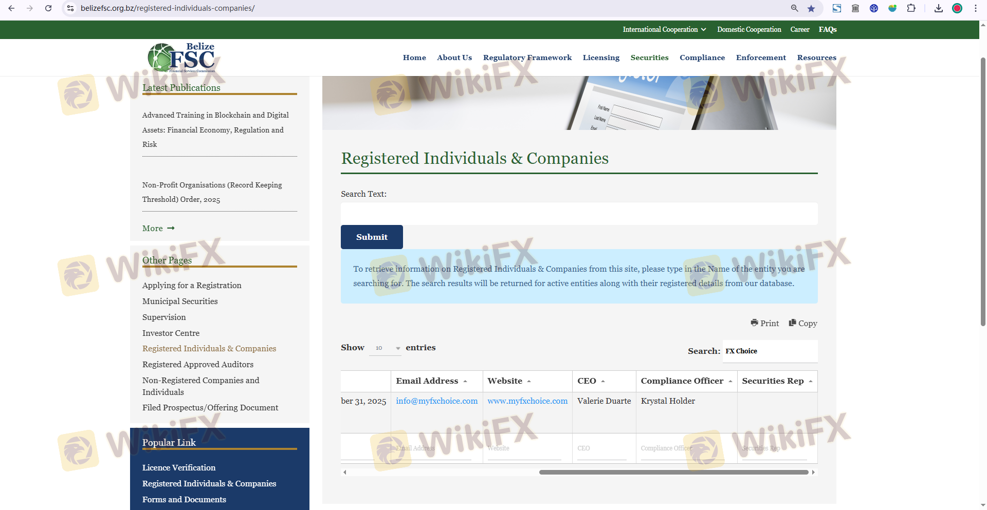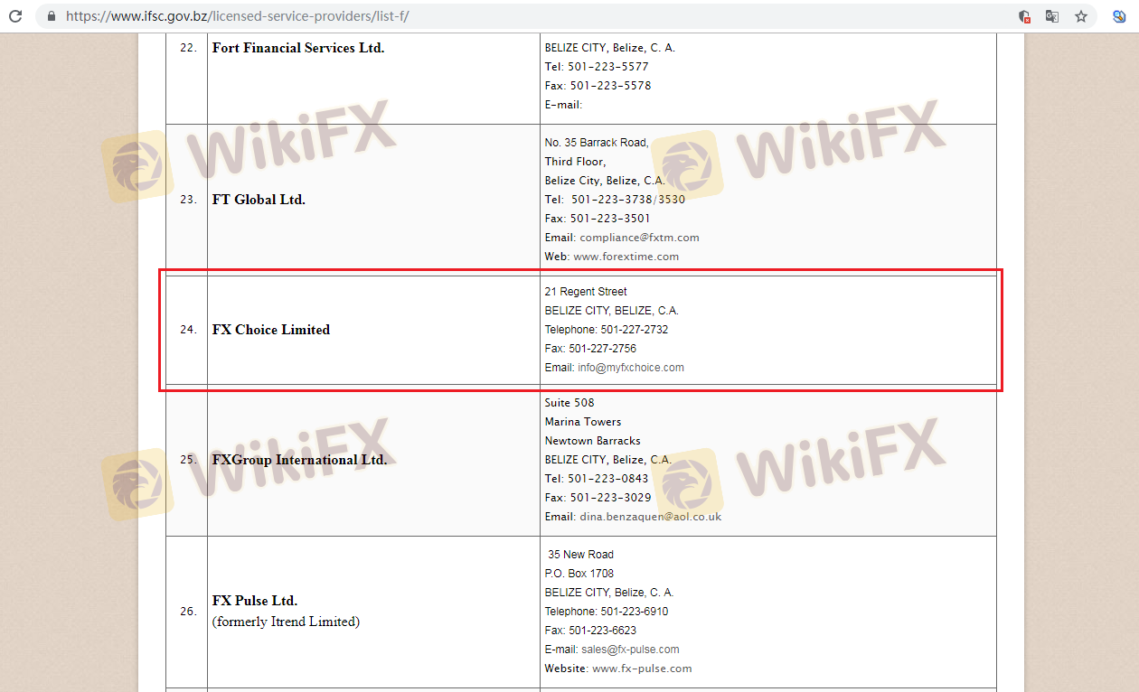 Respecto a la legitimidad del bróker de Forex FX Choice, proporciona Belice FSC y (también cuenta con un estudio gráfico sobre seguridad.).