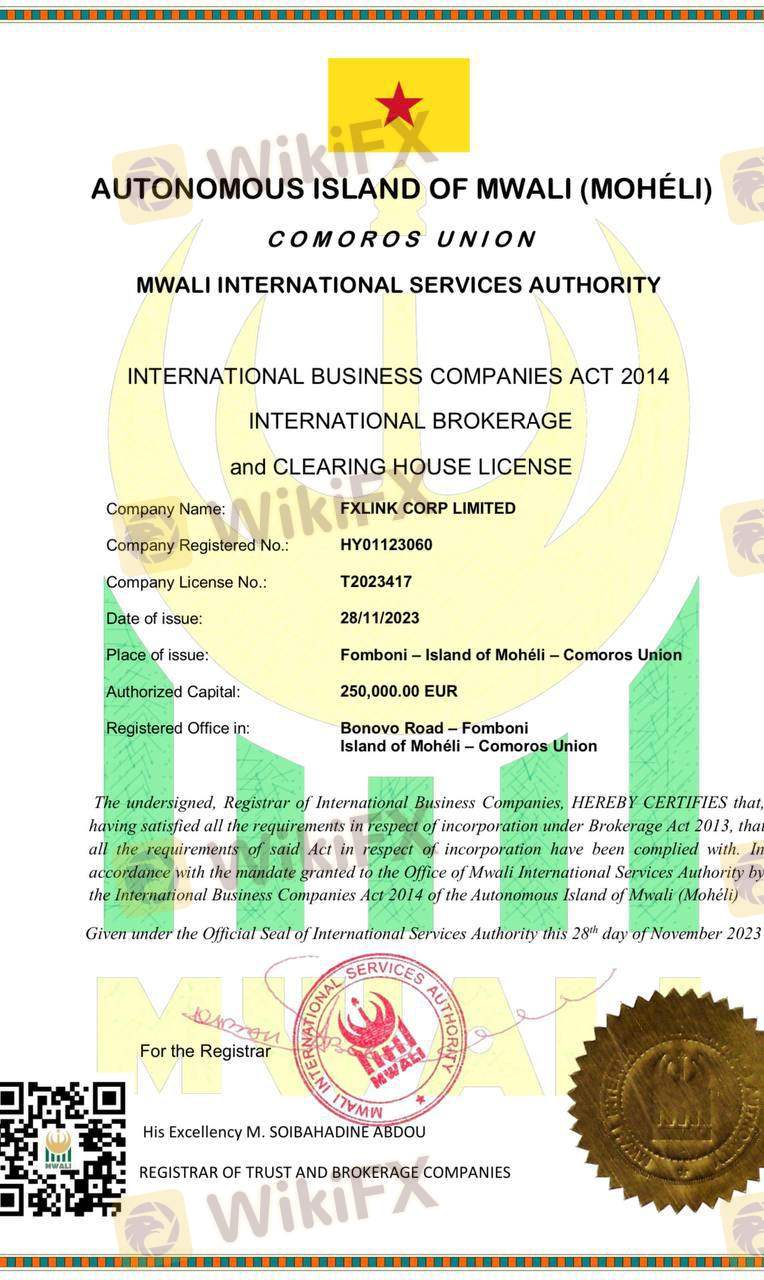 Respecto a la legitimidad del bróker de Forex FXLINK, proporciona Comoras MISA y .