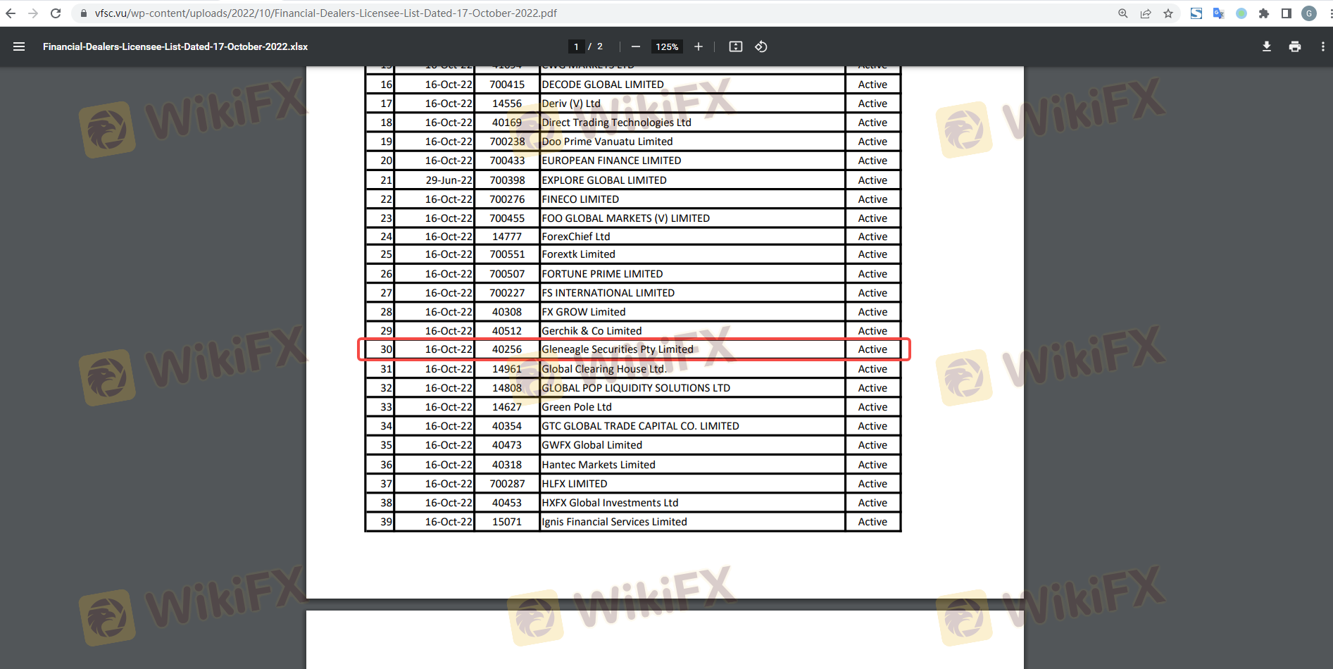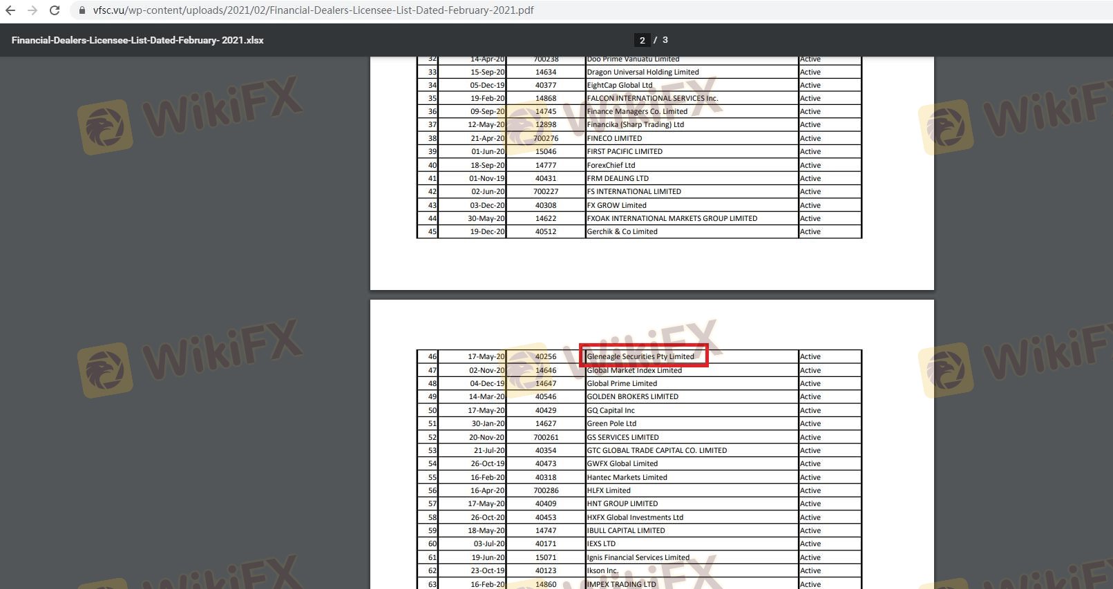| VFSC | 40256 | Vanuatu | Verificado |