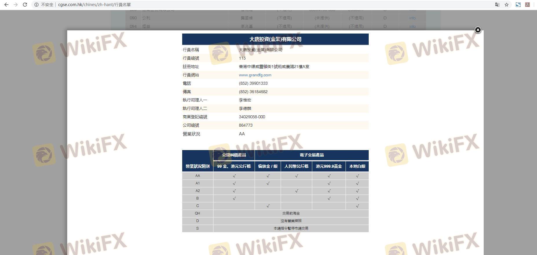 La supervisión regulatoria es un factor crítico para evaluar la seguridad de un bróker de forex. Grand Finance Group afirma estar regulado por la Chinese Gold & Silver Exchange Society (CGSE), que es un organismo regulador reconocido en Hong Kong. Esta regulación tiene como objetivo proteger a los operadores asegurando que los brókers cumplan con estándares específicos de conducta, incluida la protección de los fondos de los clientes.