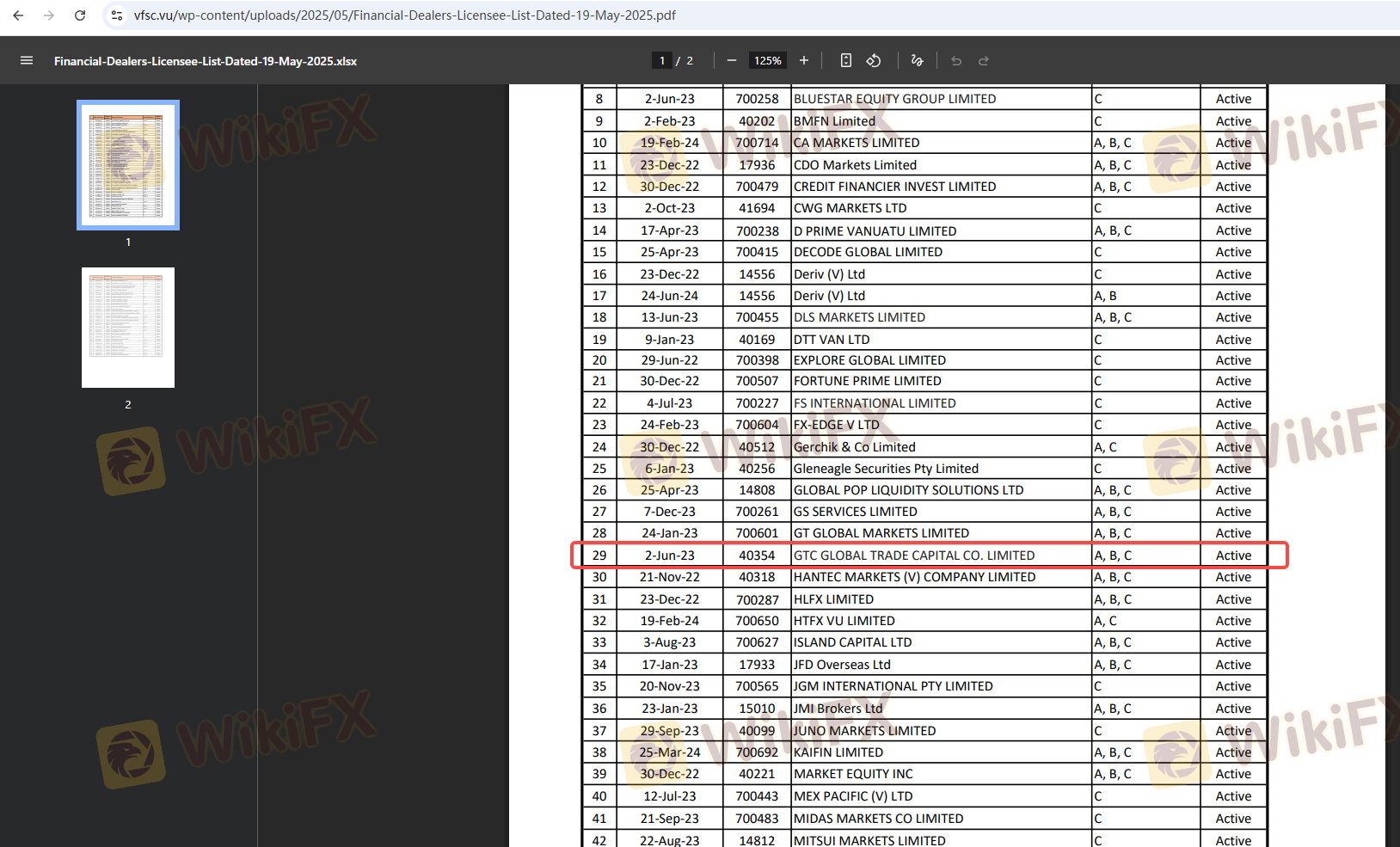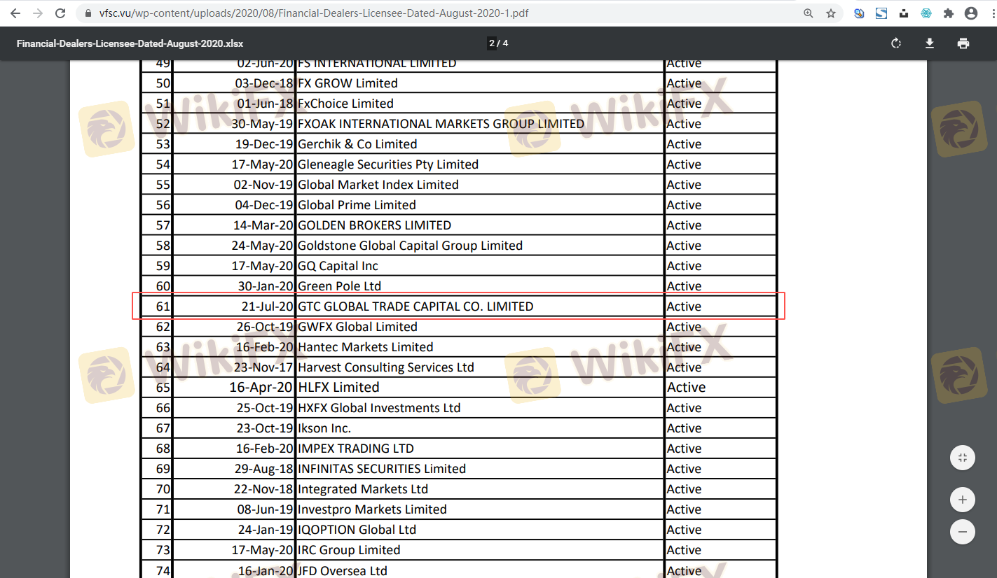 Respecto a la legitimidad del bróker de Forex GTCFX, proporciona Reino Unido FCA, Australia ASIC, Emiratos Árabes Unidos CMA, Vanuatu VFSC y (también cuenta con un estudio gráfico sobre seguridad.).
