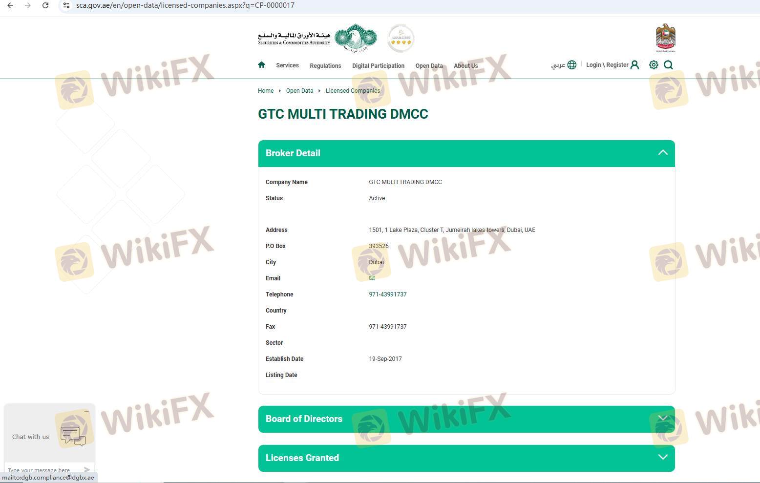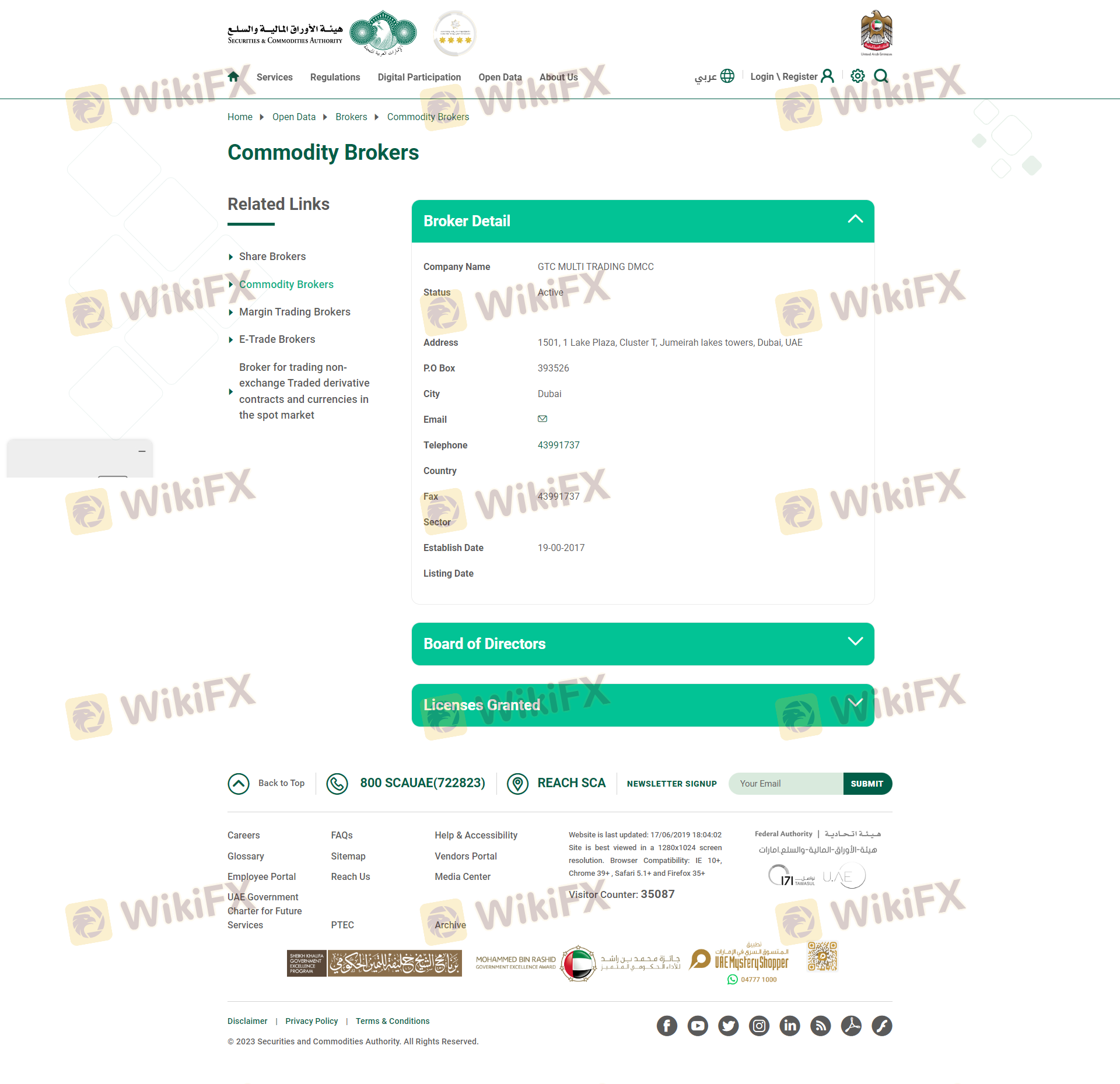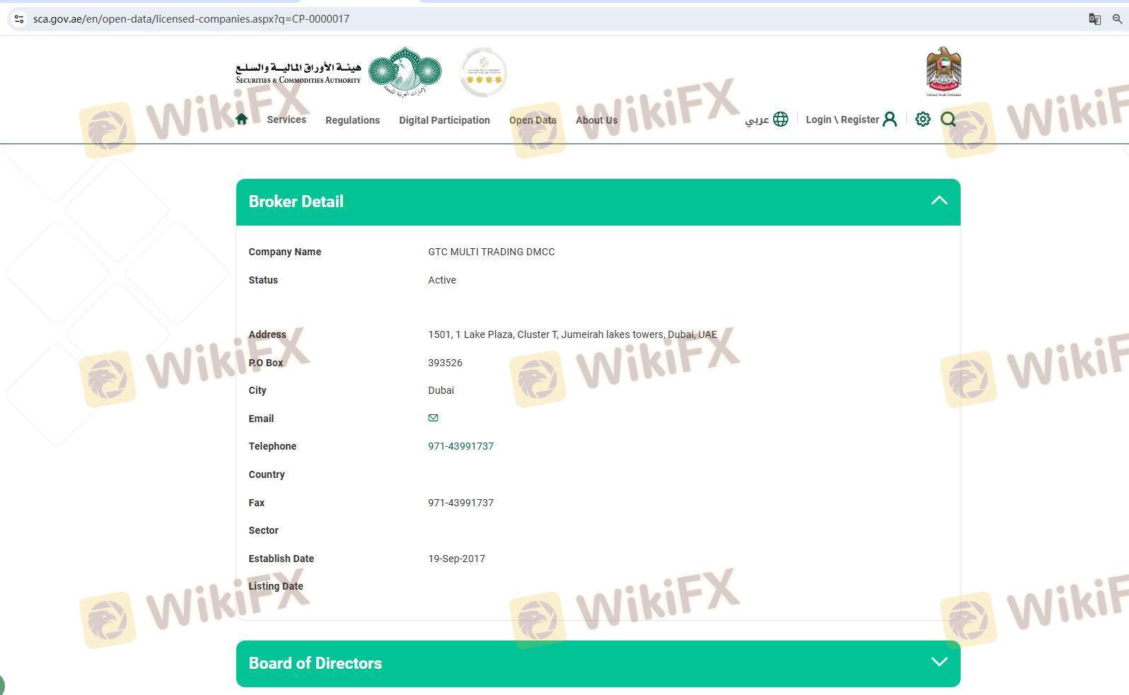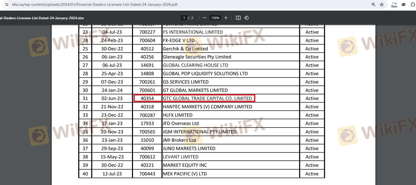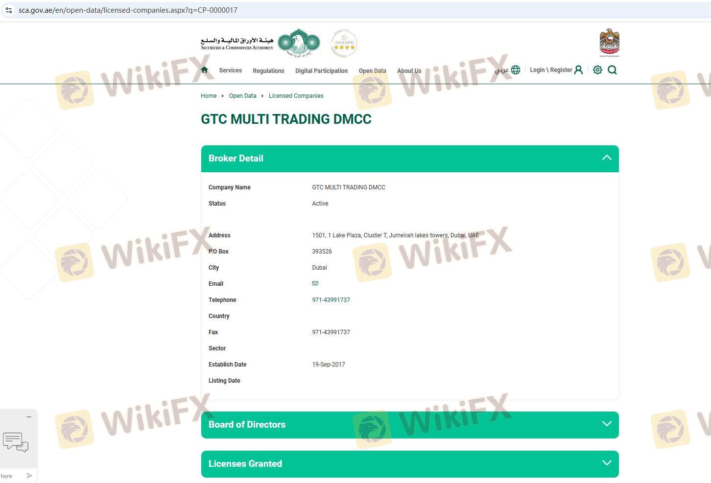 El estado regulatorio de un bróker es uno de los factores más críticos para determinar su legitimidad. GTCFX afirma operar bajo múltiples autoridades reguladoras, incluida la Comisión de Servicios Financieros (FSC) de Mauricio, la Comisión de Servicios Financieros de Vanuatu (VFSC) y la Autoridad de Valores y Productos Básicos (SCA) de los Emiratos Árabes Unidos. Sin embargo, la calidad de la regulación varía significativamente entre estos organismos.