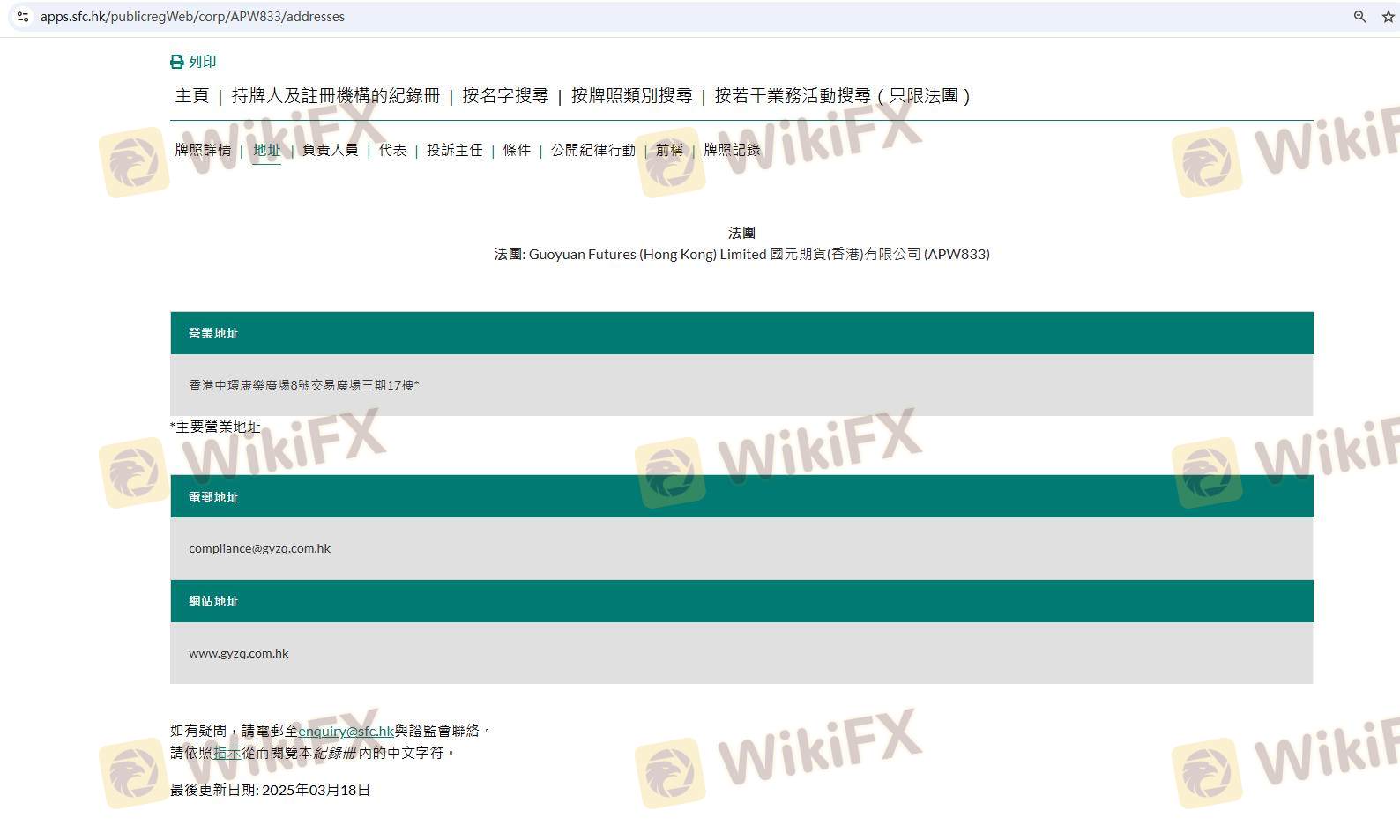 Respecto a la legitimidad del bróker de Forex GUOYUAN INTERNATIONAL, proporciona Hong Kong SFC y (también cuenta con un estudio gráfico sobre seguridad.).