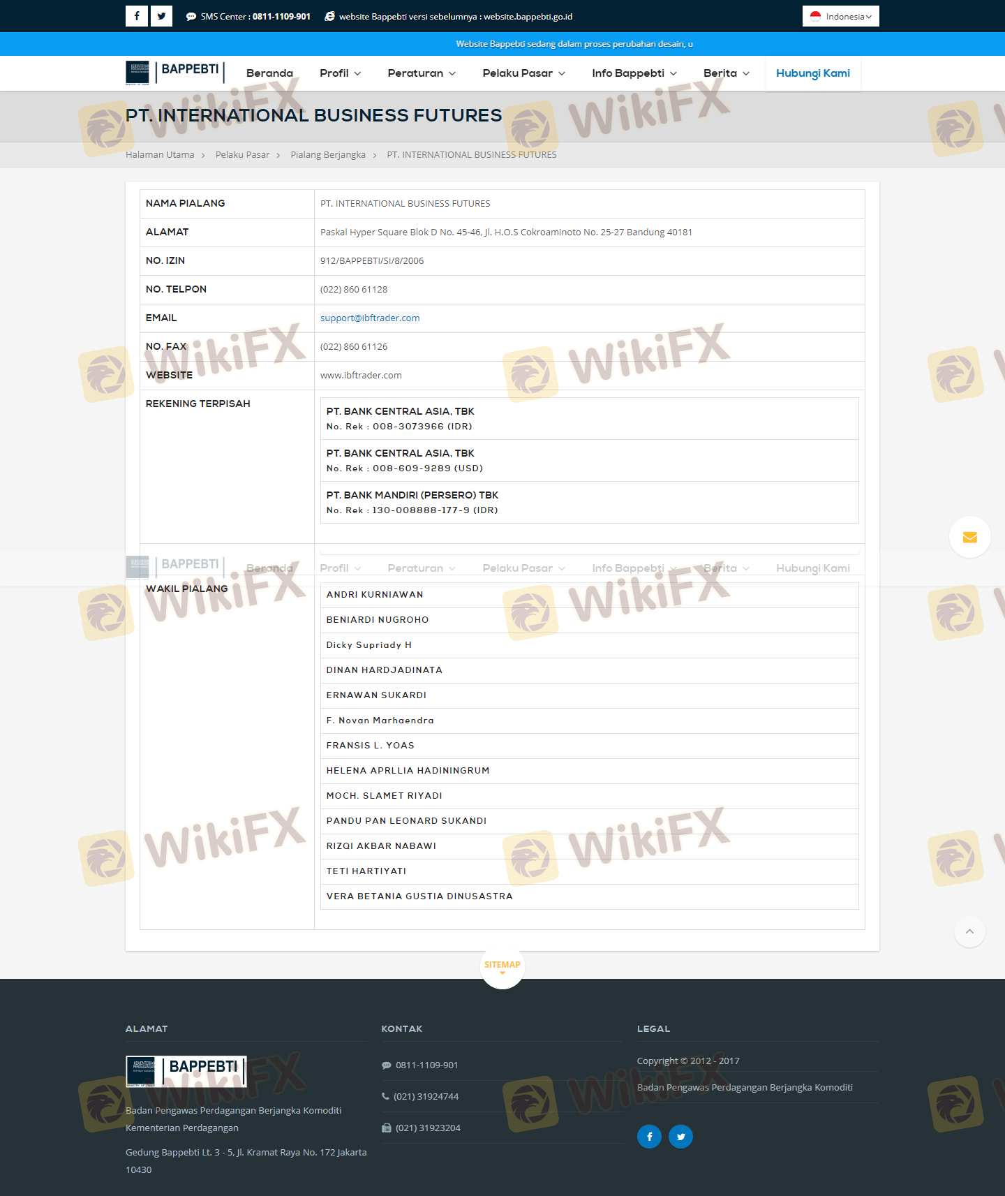 IBF se estableció en 2005 y desde entonces ha estado operando en el mercado de divisas indonesio. La empresa afirma proporcionar una variedad de servicios de trading, incluyendo forex, materias primas e índices. Sin embargo, la información disponible sobre su estructura de propiedad y equipo de gestión es algo limitada. La transparencia es esencial al evaluar un bróker, y la falta de información detallada sobre el personal clave plantea dudas sobre la credibilidad de la empresa.