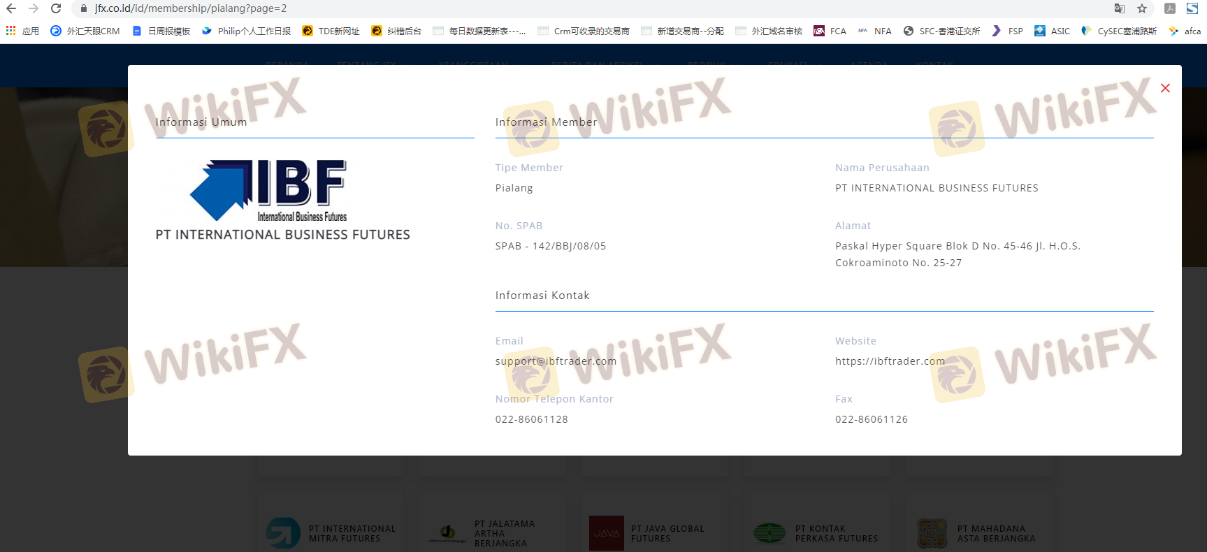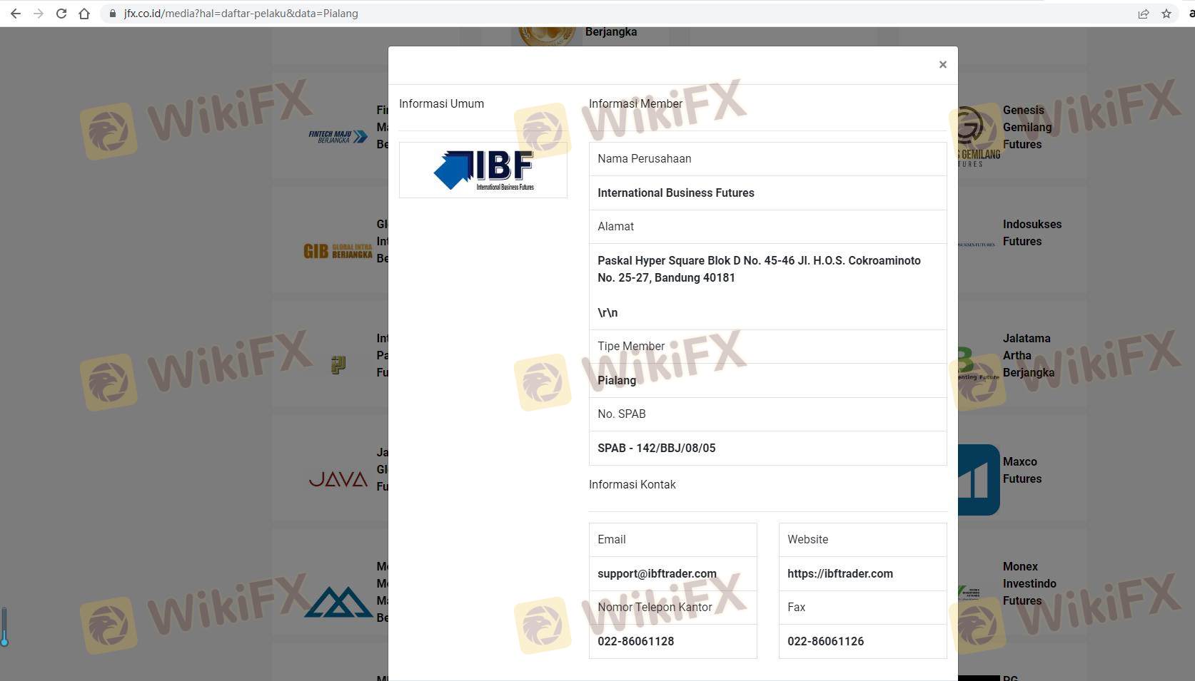 Respecto a la legitimidad del bróker de Forex International Business Futures, proporciona Indonesia BAPPEBTI, Indonesia JFX y .