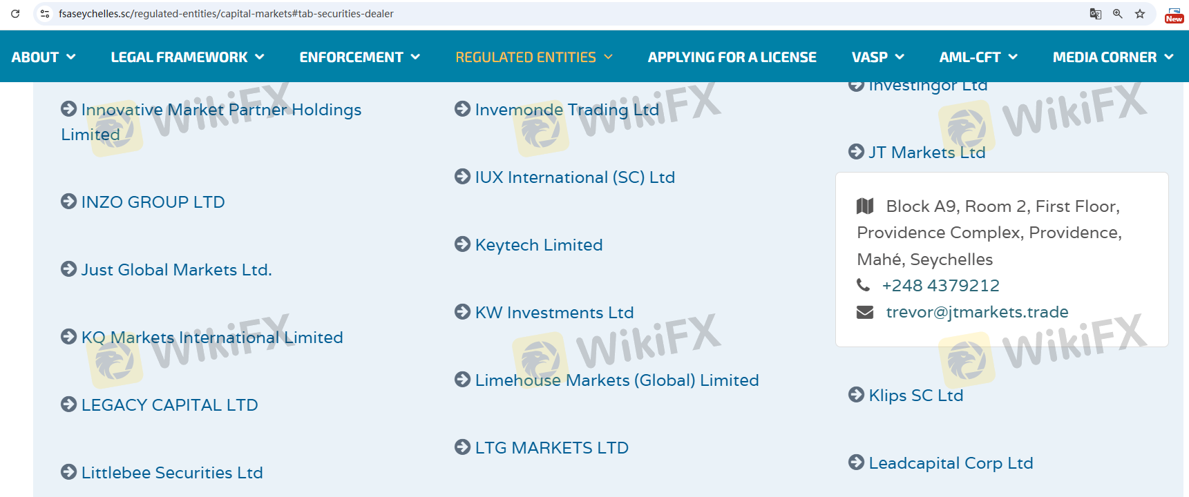 Respecto a la legitimidad del bróker de Forex JT Markets, proporciona Seychelles FSA y .