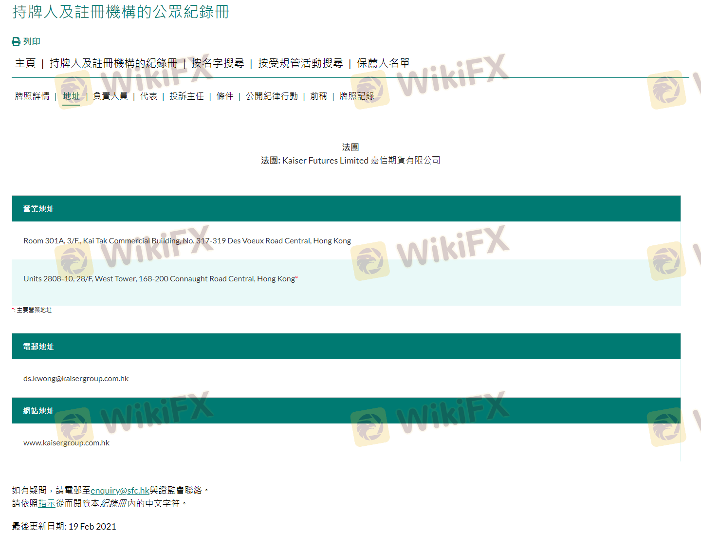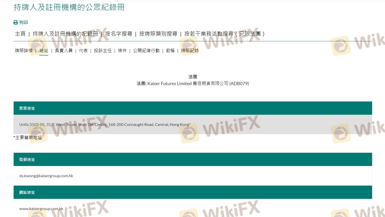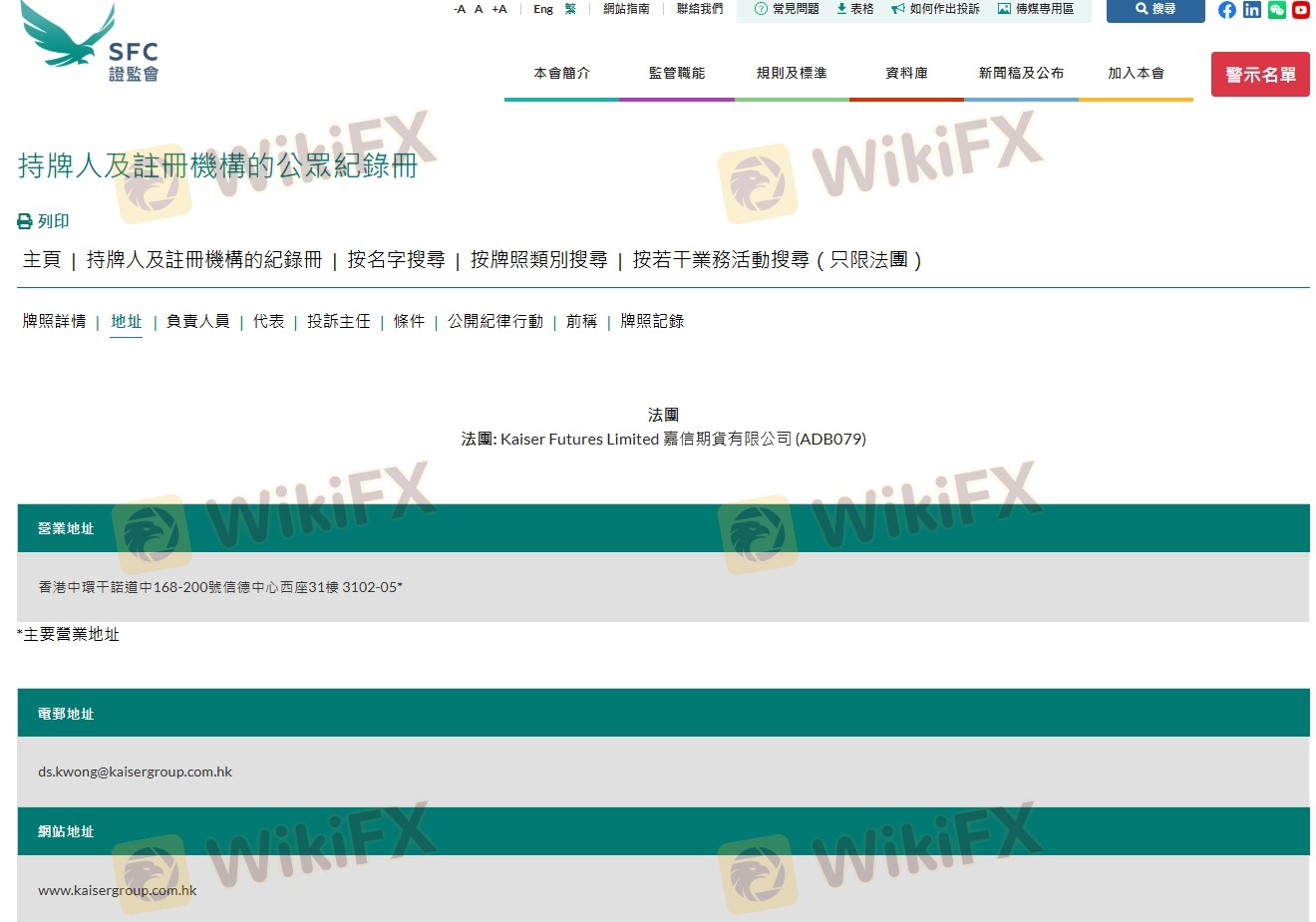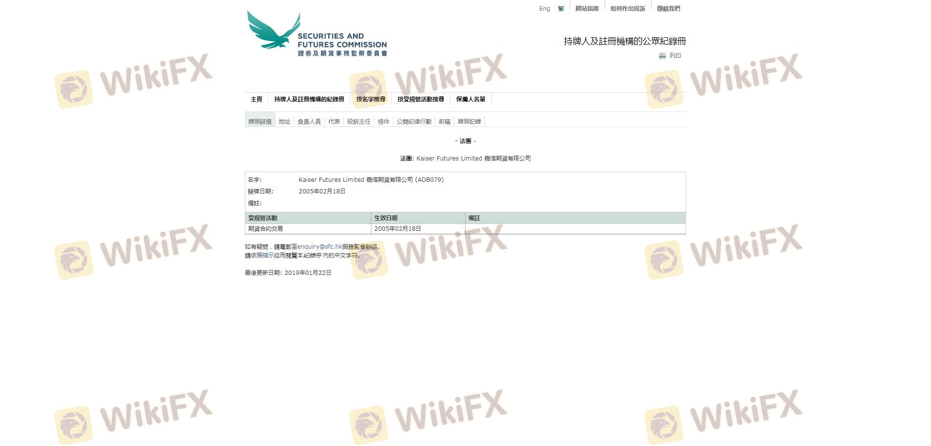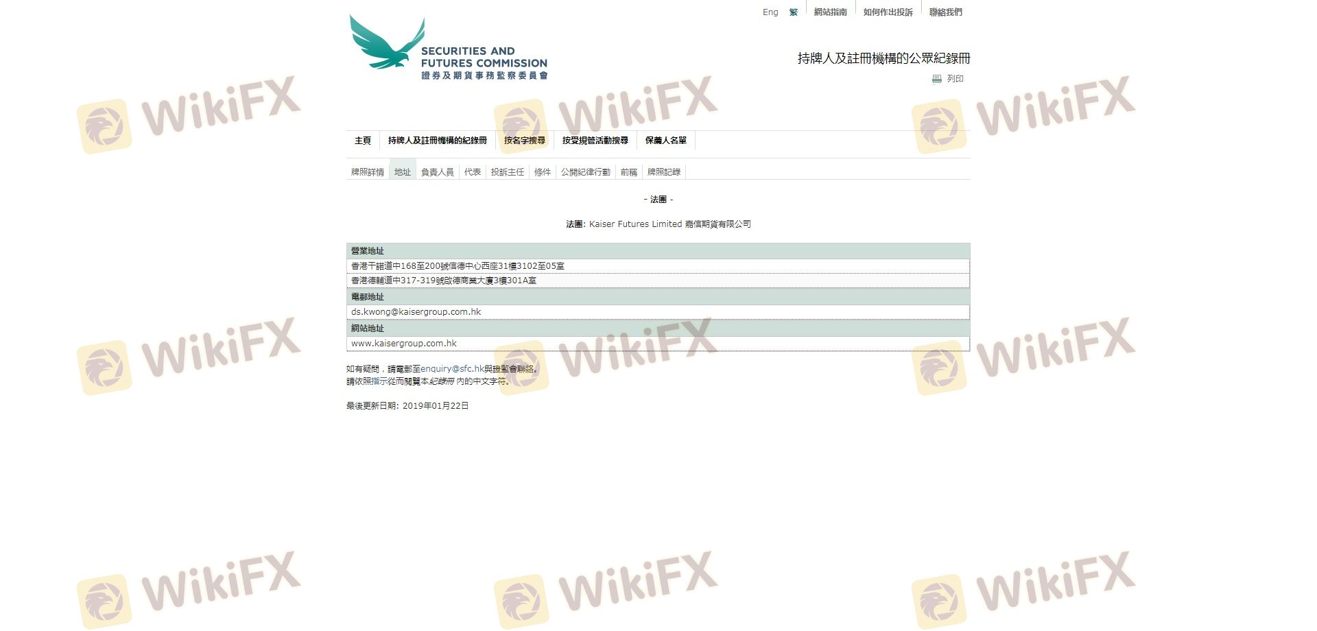Respecto a la legitimidad del bróker de Forex KAISER, proporciona Hong Kong SFC y (también cuenta con un estudio gráfico sobre seguridad.).