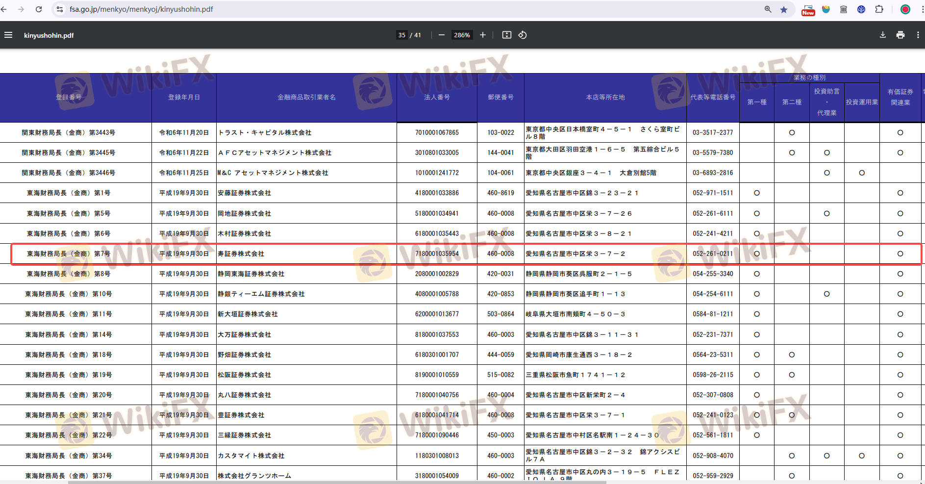 Respecto a la legitimidad del bróker de Forex Kotobuki Securities, proporciona Japón FSA y (también cuenta con un estudio gráfico sobre seguridad.).