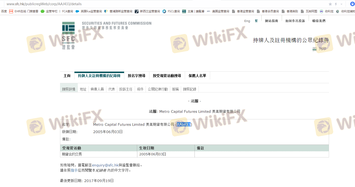 Respecto a la legitimidad del bróker de Forex Metro, proporciona Hong Kong SFC y (también cuenta con un estudio gráfico sobre seguridad.).