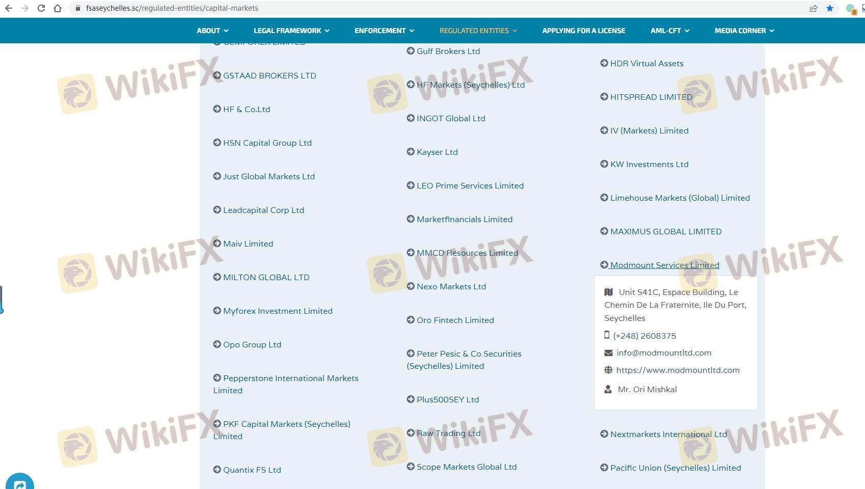 Comprender el estado regulatorio de un bróker es primordial para evaluar su legitimidad y la seguridad de los fondos de los clientes. ModMount afirma operar bajo la supervisión de la Autoridad de Servicios Financieros (FSA) en Seychelles, un organismo regulador responsable de garantizar que las instituciones financieras cumplan con los estándares necesarios y protejan a los inversores.