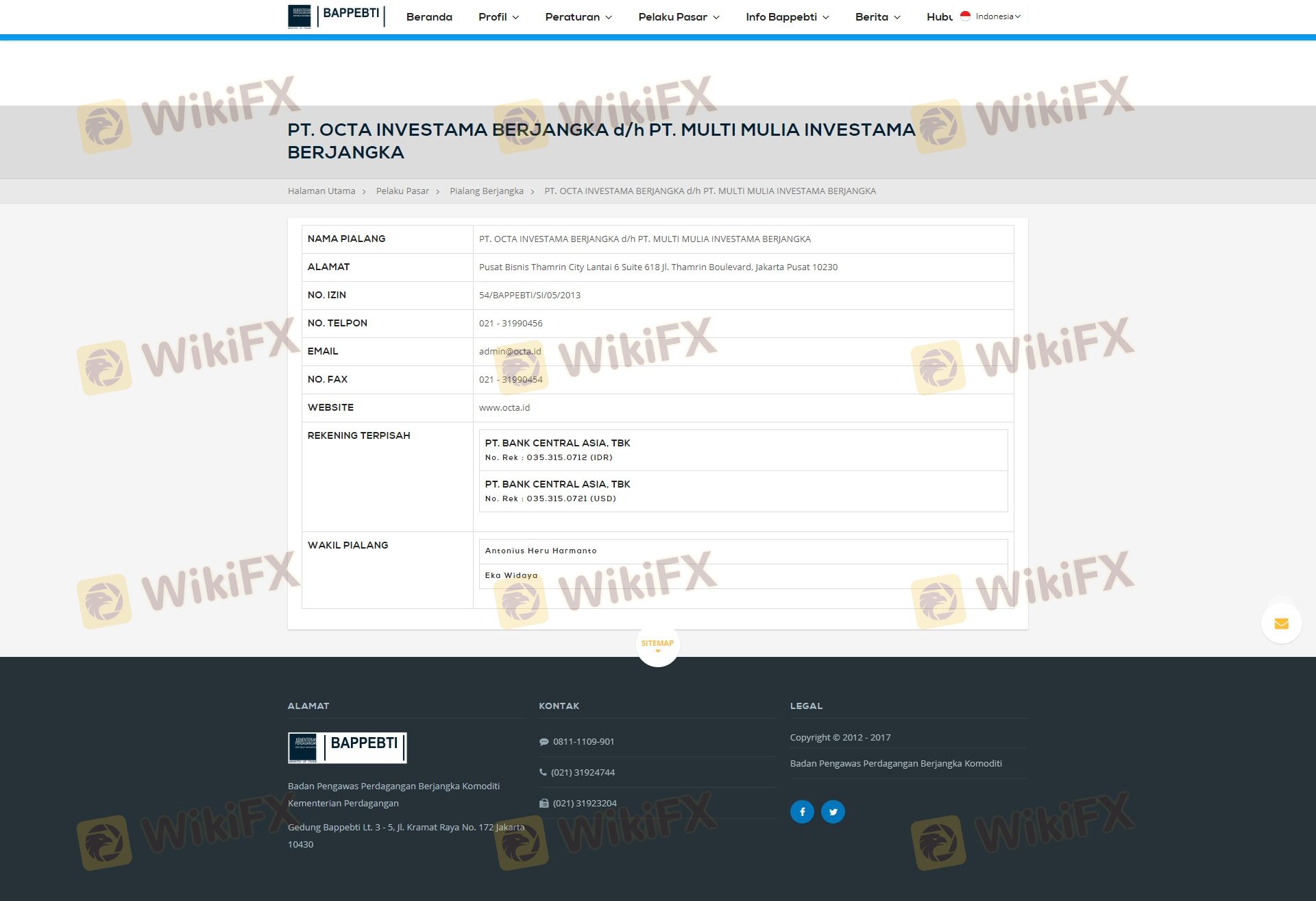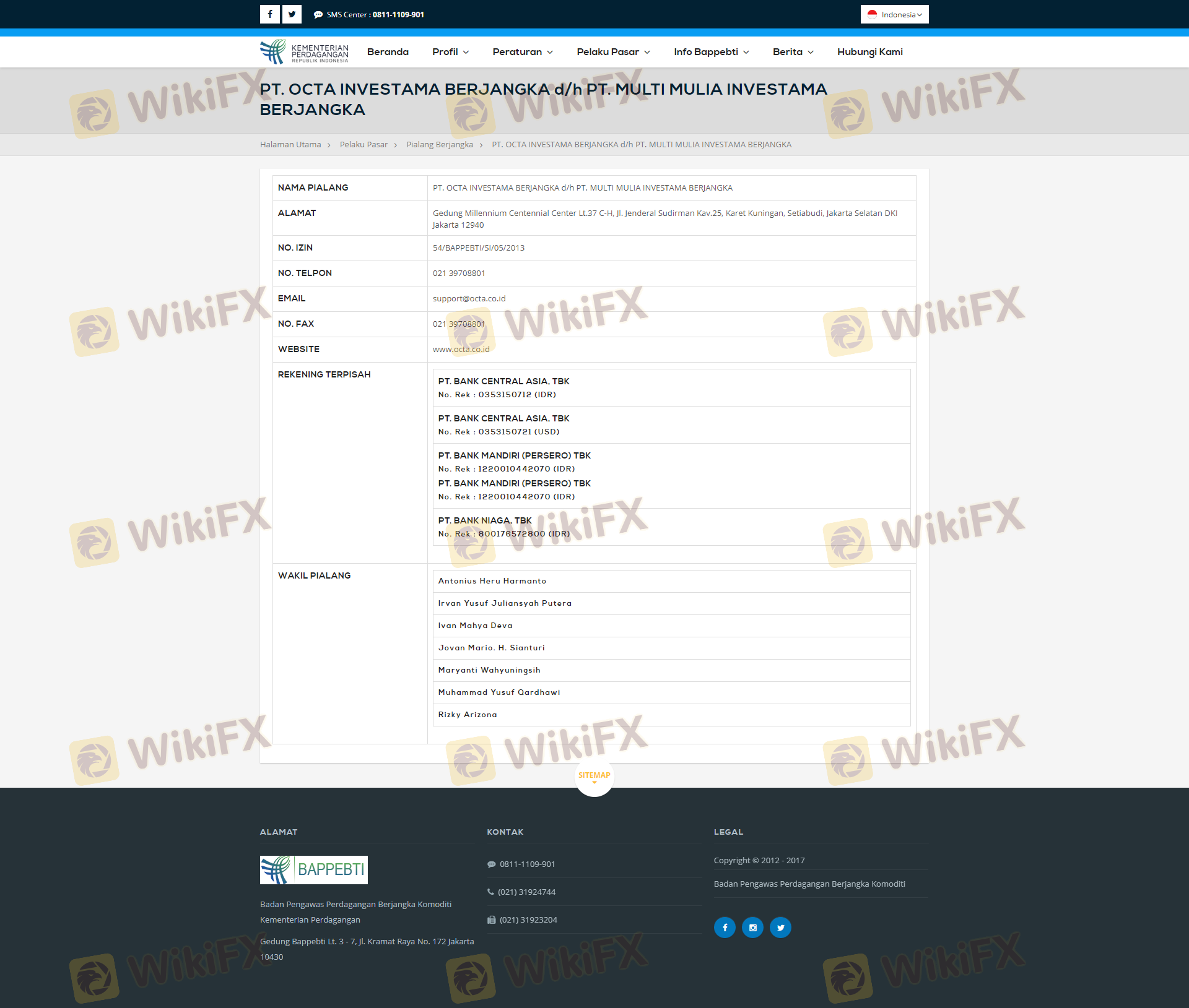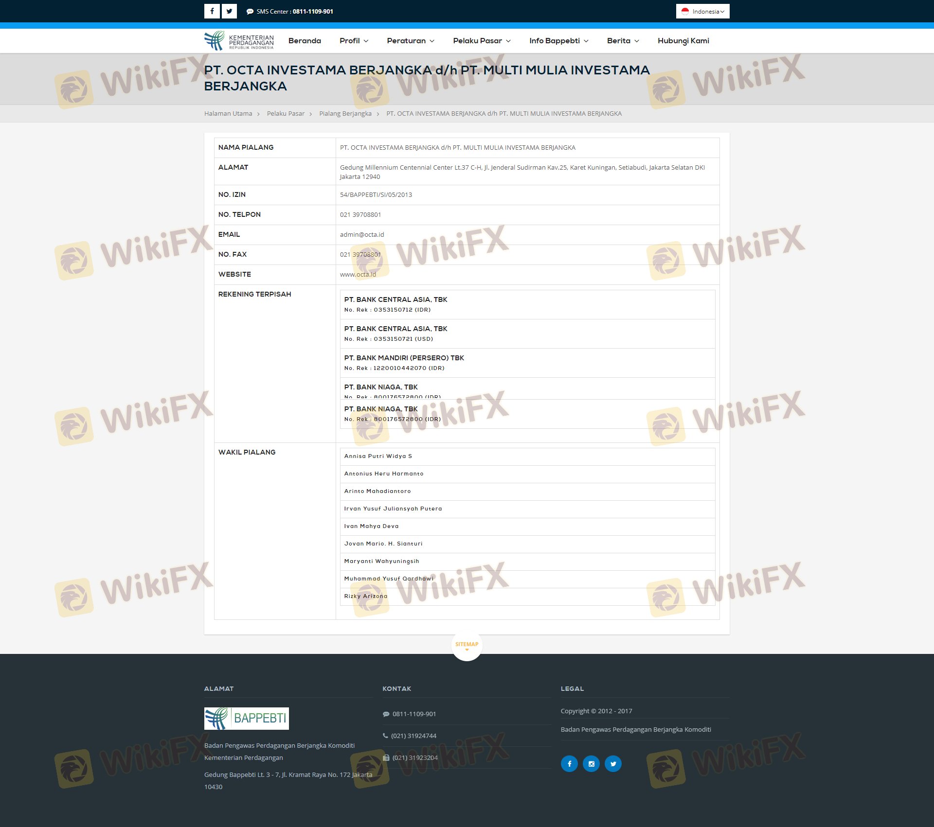 Respecto a la legitimidad del bróker de Forex Octa, proporciona Indonesia BAPPEBTI y (también cuenta con un estudio gráfico sobre seguridad.).