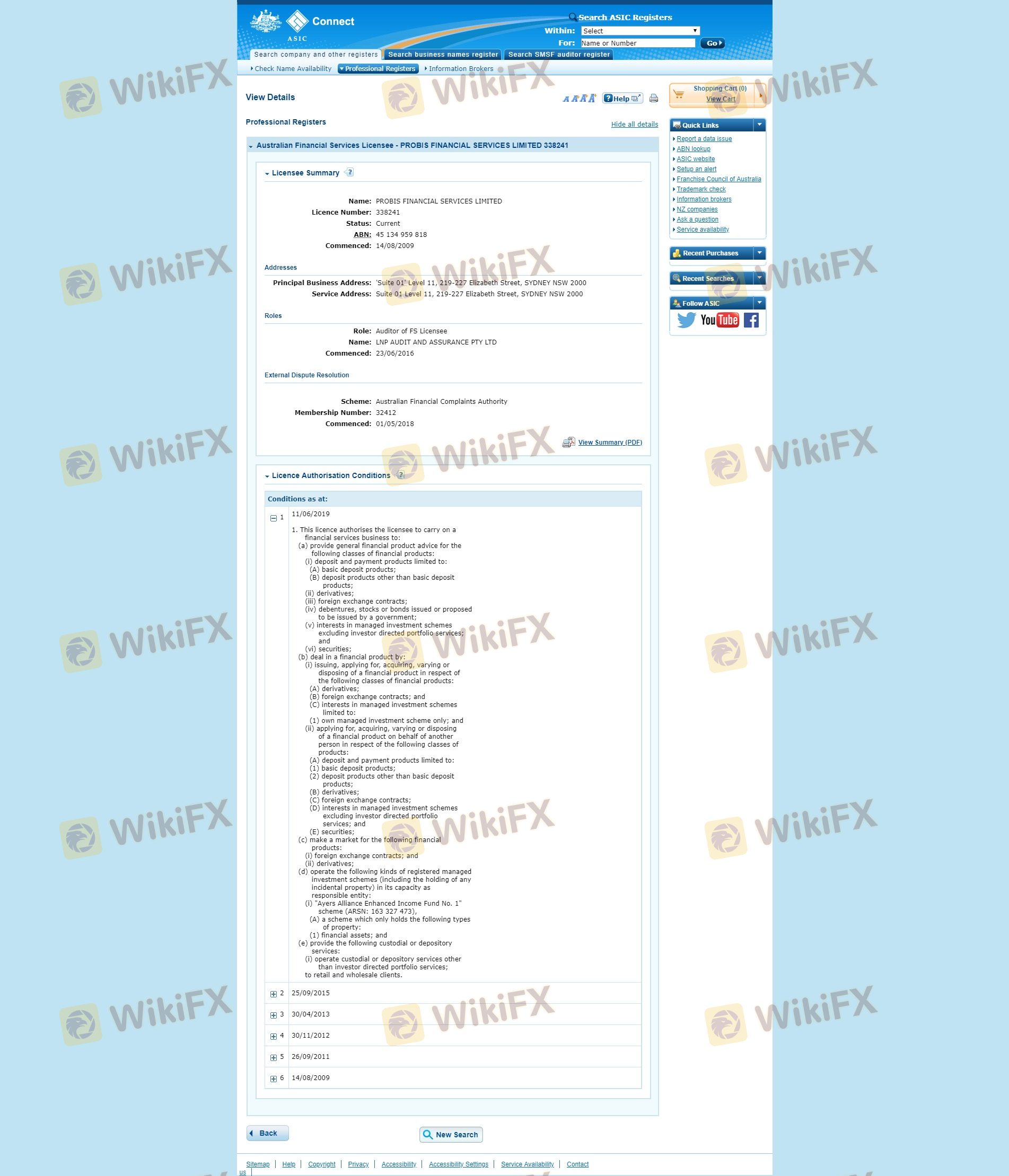 Respecto a la legitimidad del bróker de Forex Probis, proporciona Australia ASIC y .