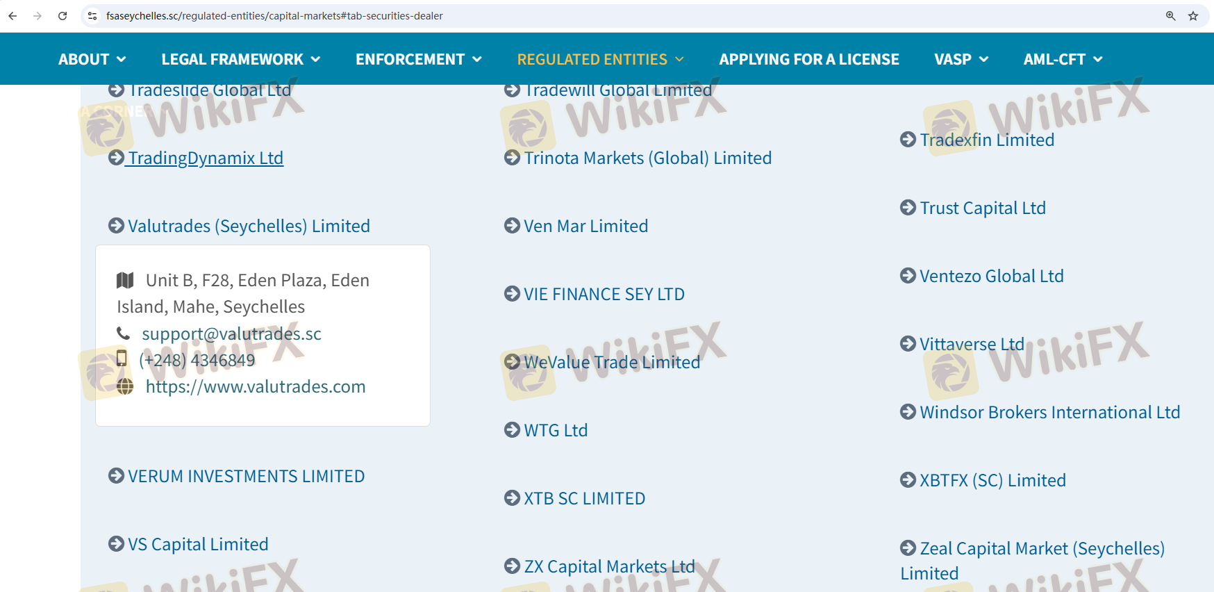 Respecto a la legitimidad del bróker de Forex VALUTRADES, proporciona Reino Unido FCA, Seychelles FSA y (también cuenta con un estudio gráfico sobre seguridad.).