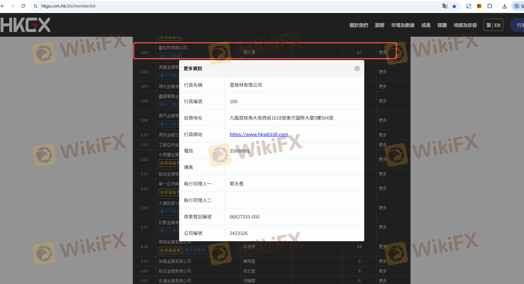 Respecto a la legitimidad del bróker de Forex WB, proporciona Hong Kong HKGX y (también cuenta con un estudio gráfico sobre seguridad.).