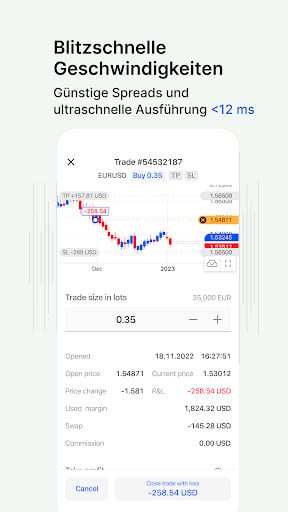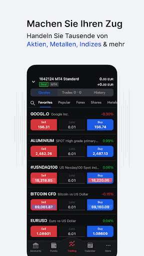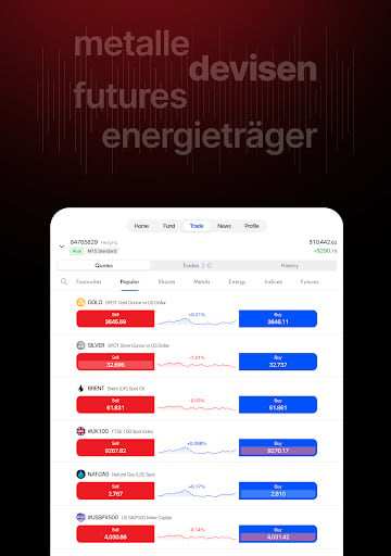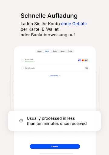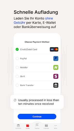- Méthodes de financement dans l'application : Gérez les dépôts et les retraits directement dans l'application.