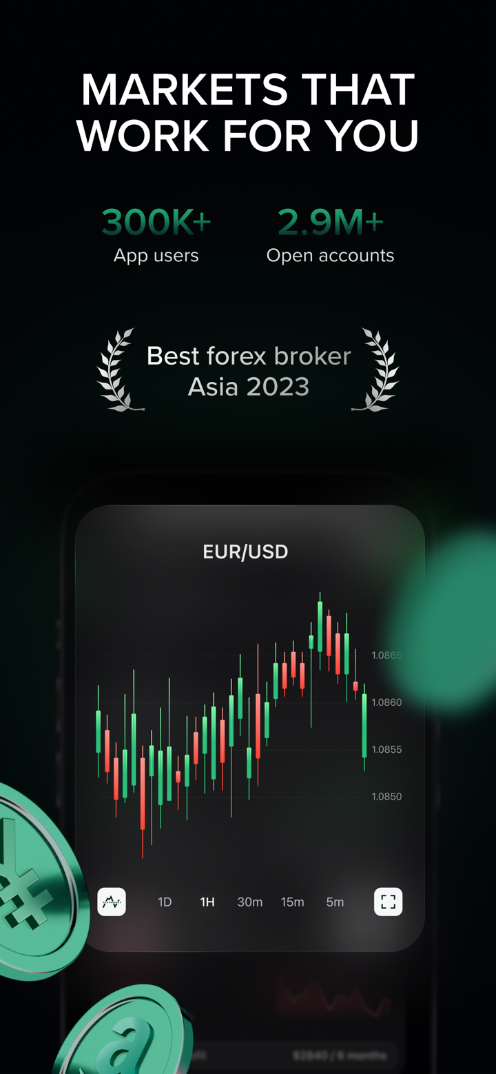 - Trading en un clic : Exécutez des trades rapidement en un seul tap.