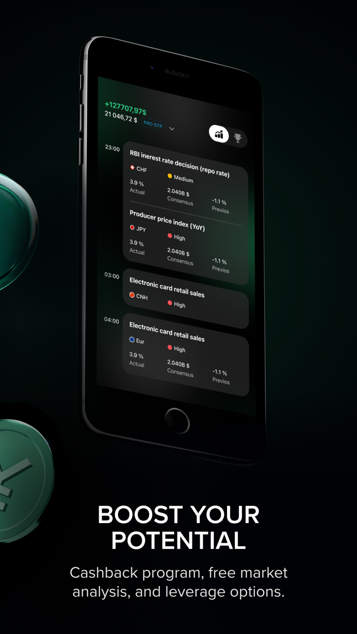 Restez informé avec les dernières actualités du marché et les fonctionnalités d'analyse intégrées à l'application pour prendre des décisions de trading éclairées.