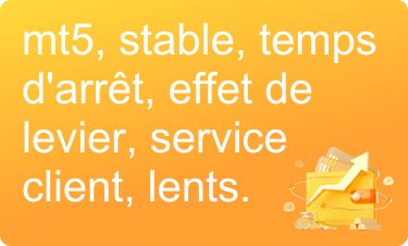 J'adore que la plateforme mt5 soit toujours stable et connaît rarement des temps d'arrêt. Son effet de levier flexible est un autre avantage, parfaitement adapté pour moi avec peu d'argent😃😃😃. Leur service client a besoin de quelques améliorations, vraiment. Vous savez pourquoi ? Ils sont lents à répondre...