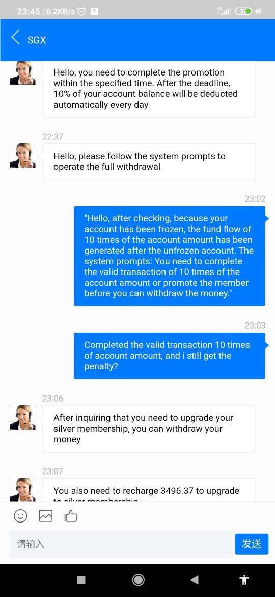 Je viens de faire deux retraits avant. Le solde restant ne peut pas être retiré. Ils m'encouragent à déposer et à devenir membre. J'ai peur que davantage de fonds soient bloqués dans la plate-forme et ne puissent pas se retirer.