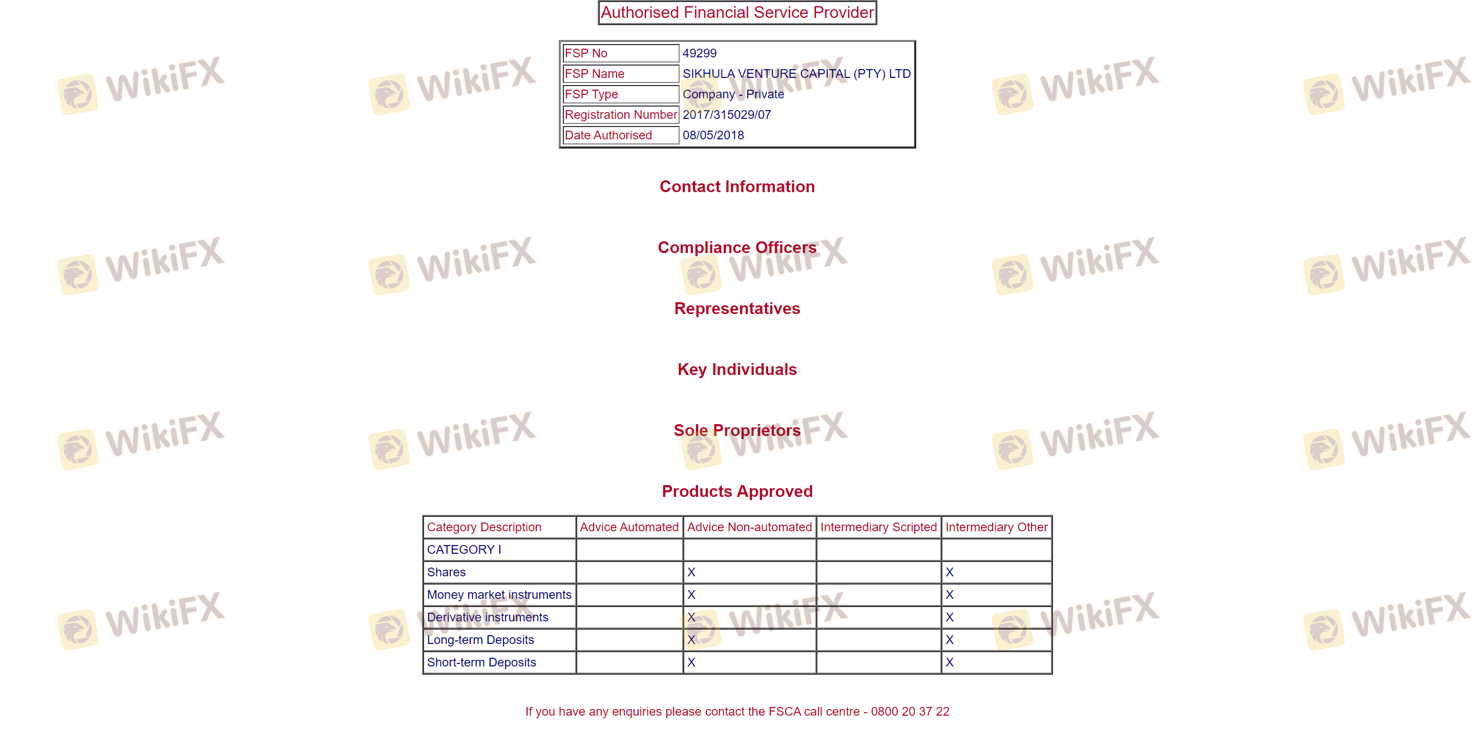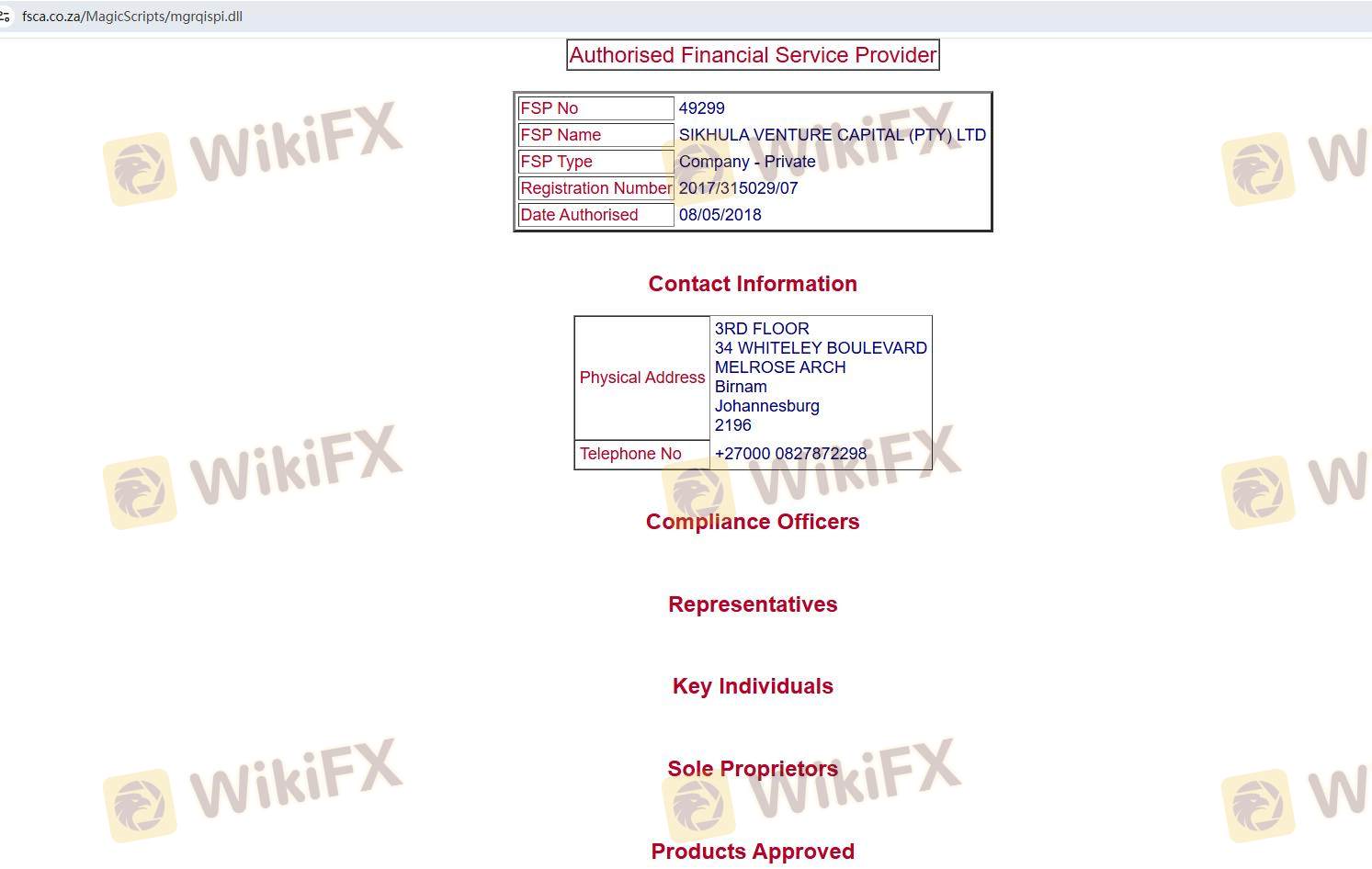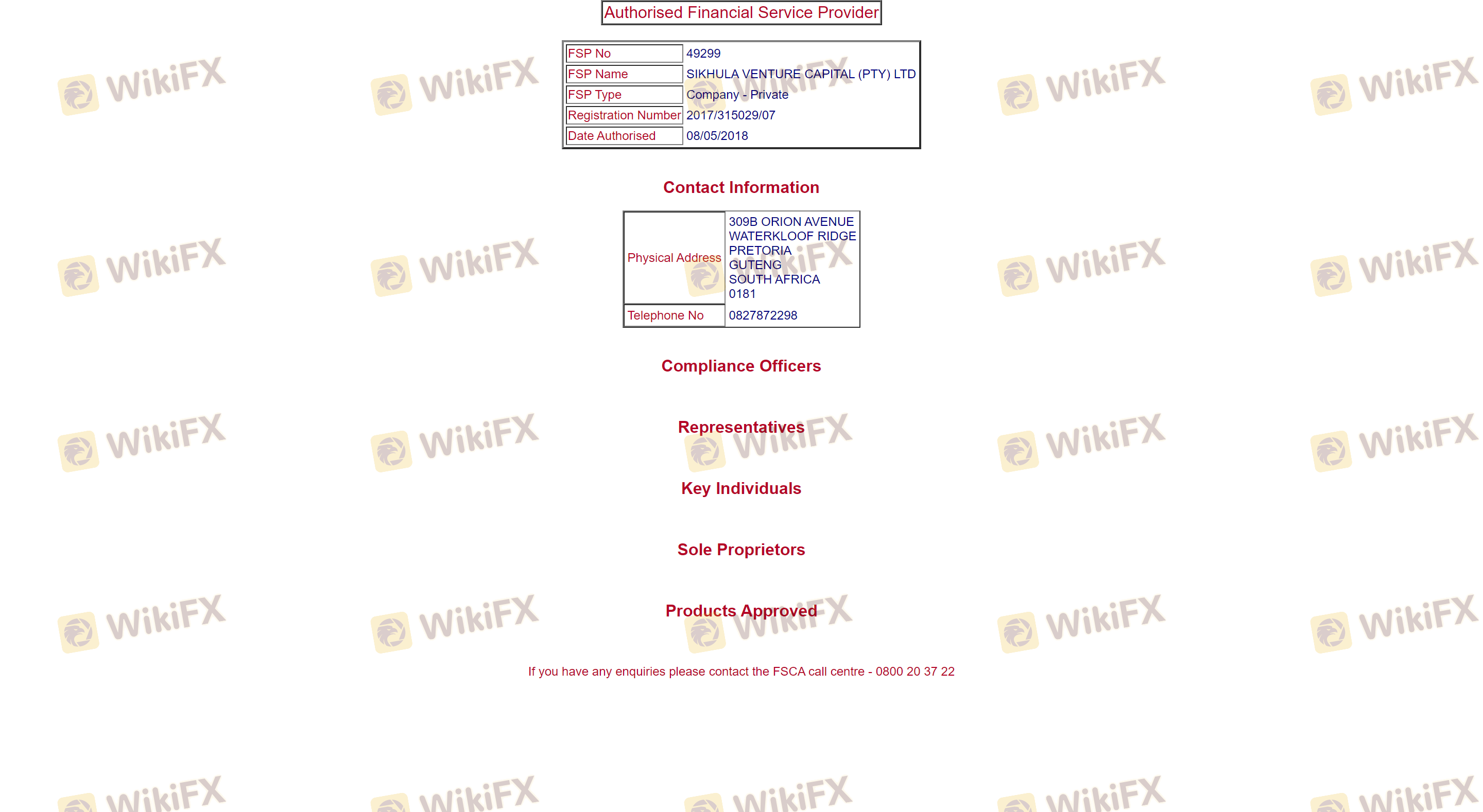 | FSCA | 2017/315029 | Afrique du Sud | Vérifié |
