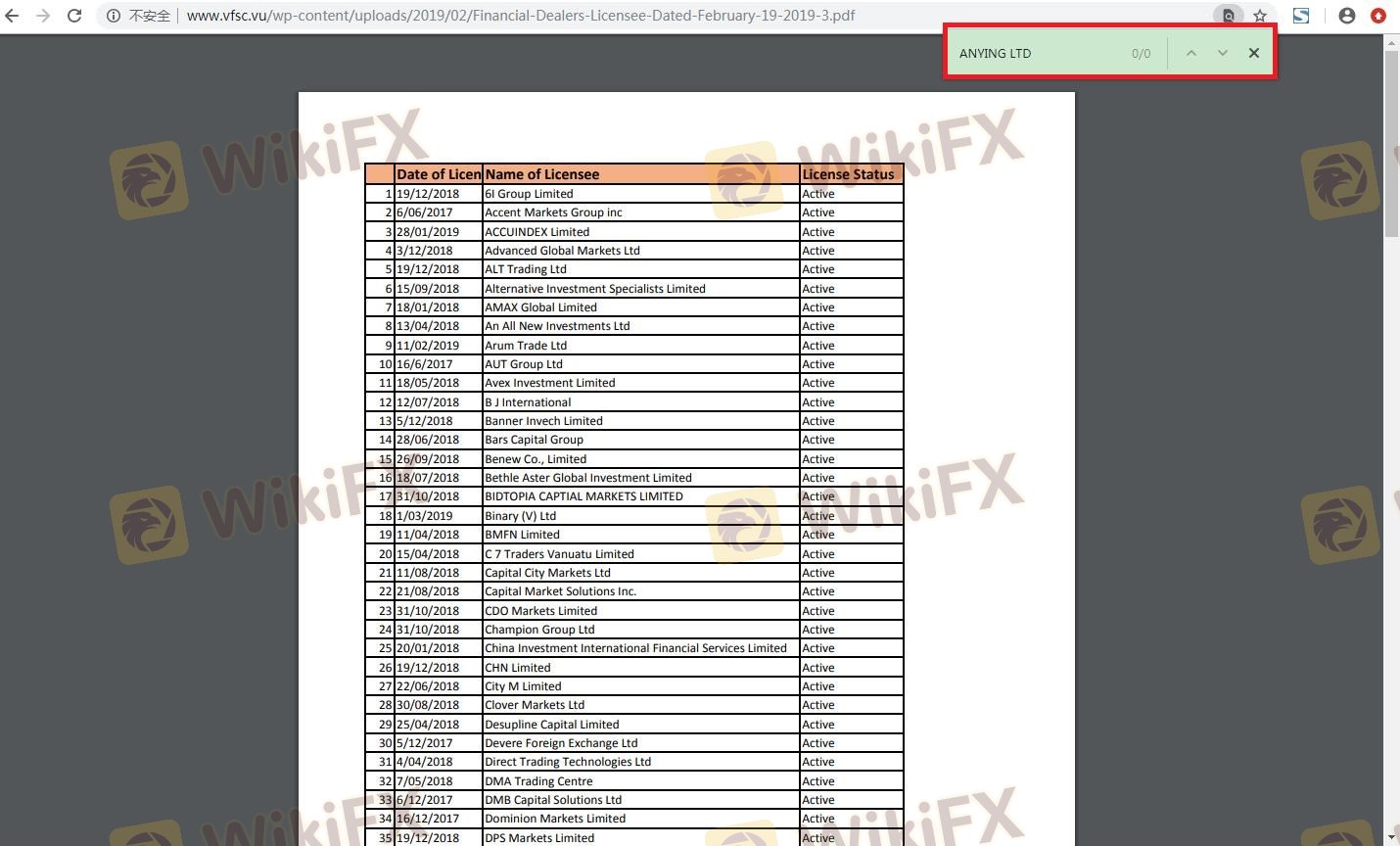 Concernant la légitimité du courtier forex Anfore FX, il fournit VFSC et .