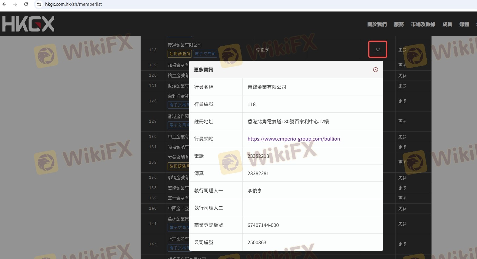 Emperio Group, fondé en 2014, se présente comme un fournisseur de services financiers spécialisé dans le négoce de métaux précieux, notamment l'or et l'argent. Opérant depuis Hong Kong, il propose une gamme d'opportunités d'investissement, incluant des pièces et des lingots, s'adressant à la fois aux investisseurs individuels et institutionnels. Alors que le marché des changes continue de croître, l'importance de choisir un courtier digne de confiance ne peut être surestimée. Les traders sont souvent confrontés à des risques associés à des courtiers non réglementés ou mal réglementés, ce qui peut entraîner des pertes financières importantes. Par conséquent, évaluer la crédibilité et la sécurité d'Emperio Group est crucial. Cet article utilise un cadre d'évaluation complet, en se concentrant sur la conformité réglementaire, les antécédents de l'entreprise, les conditions de trading, la sécurité des clients et les retours d'expérience, pour déterminer si Emperio Group est sûr ou une arnaque potentielle.