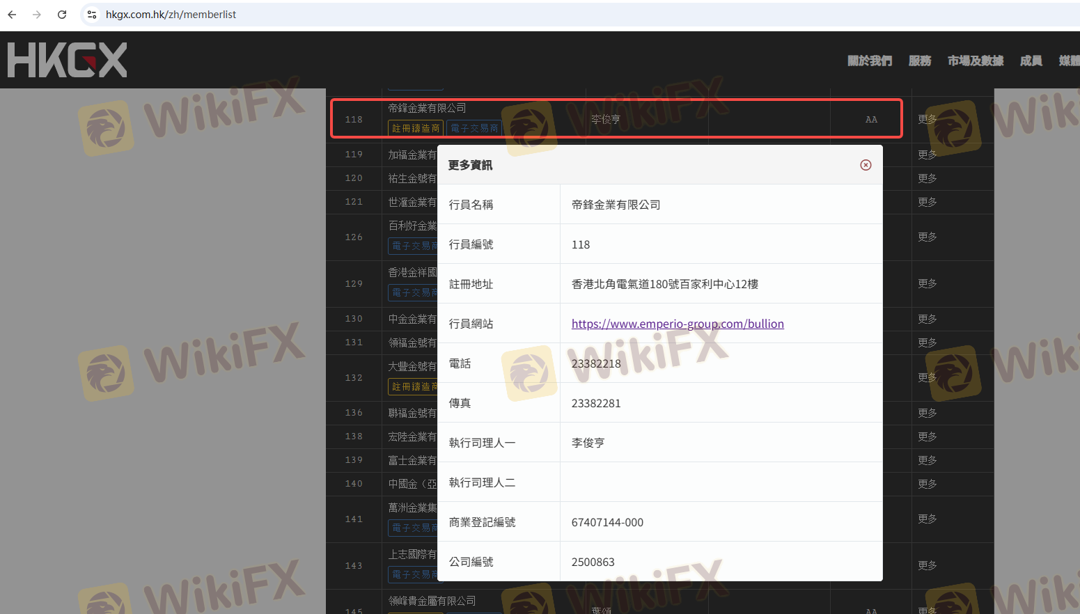 Concernant la légitimité du courtier forex EMPERIO GROUP, il fournit HKGX et (dispose également d'une enquête graphique sur la sécurité).