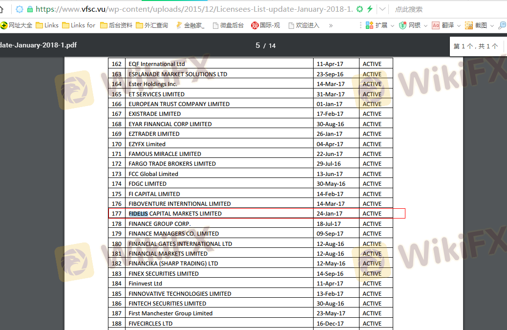 Concernant la légitimité du courtier forex Fidelis CM, il fournit VFSC, CYSEC et (dispose également d'une enquête graphique sur la sécurité).