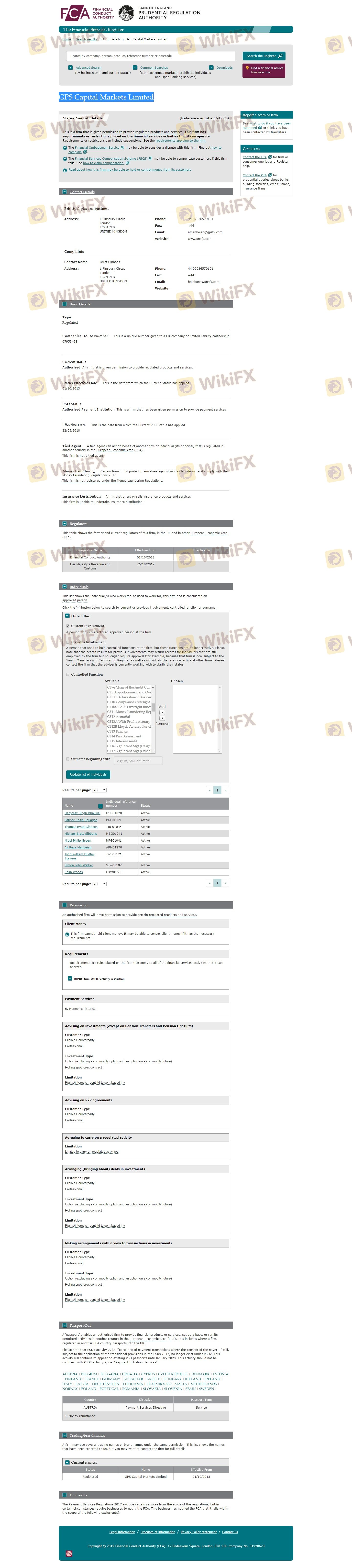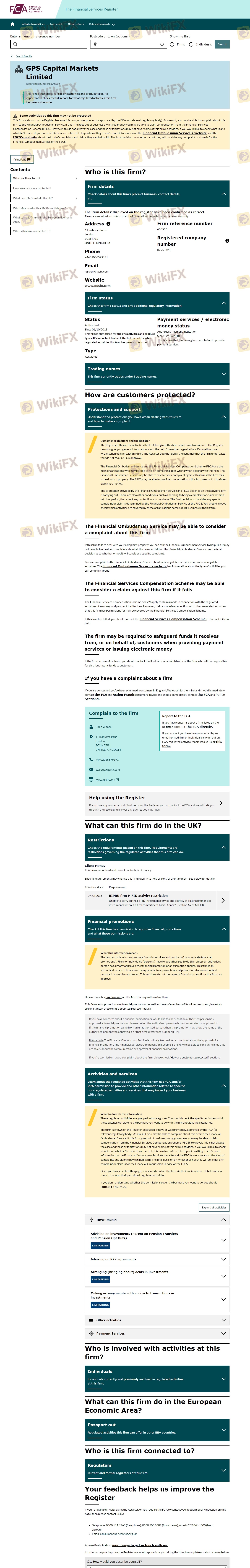 Concernant la légitimité du courtier forex GPS, il fournit FCA et (dispose également d'une enquête graphique sur la sécurité).