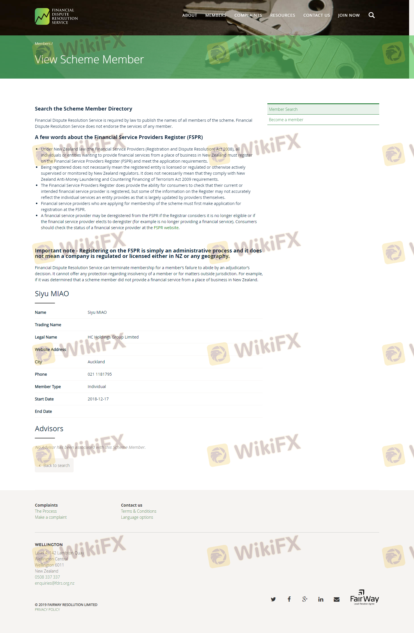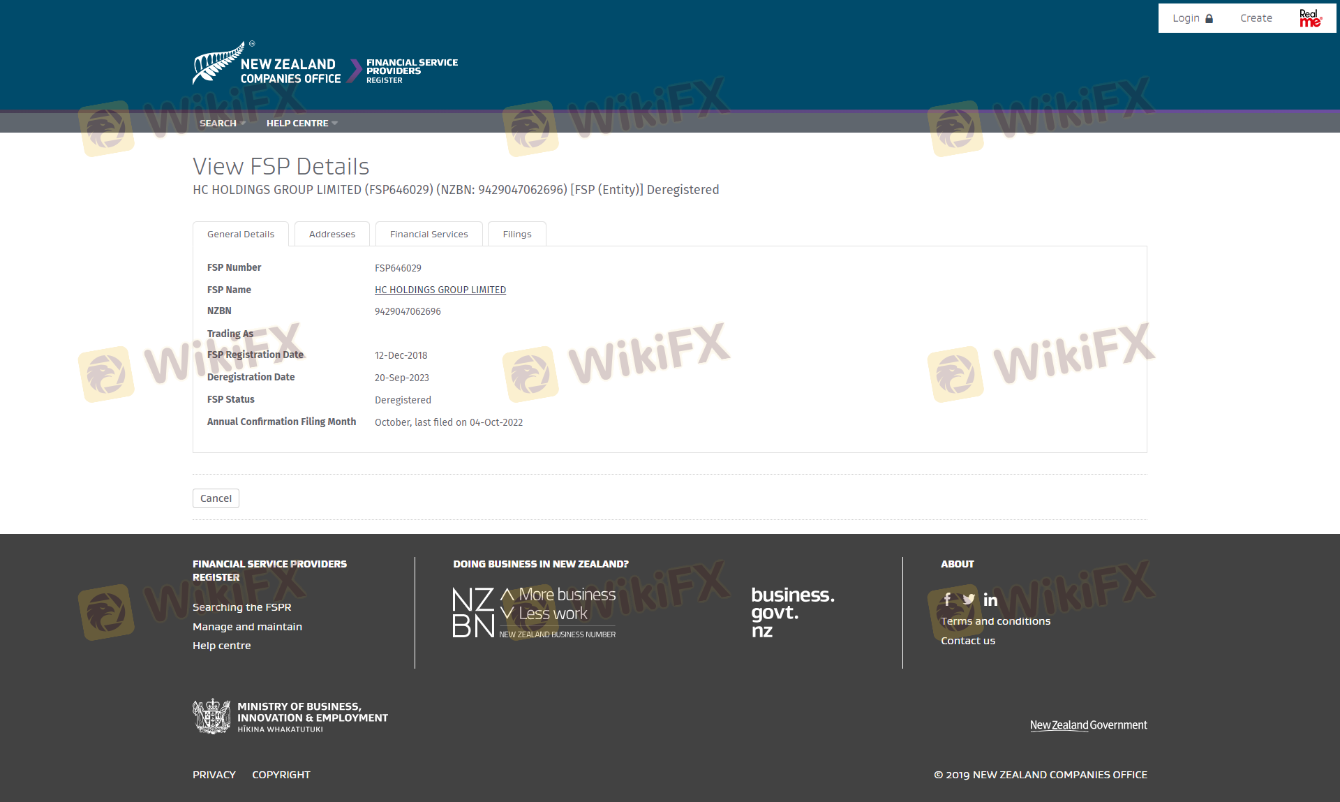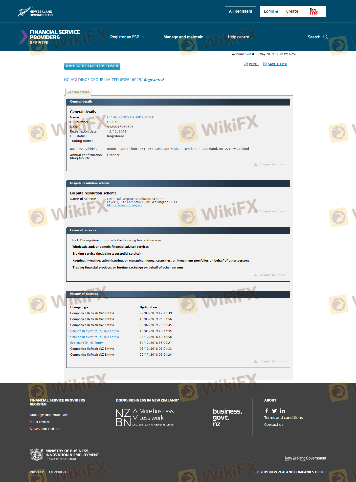Concernant la légitimité du courtier forex HCFX, il fournit FSPR et (dispose également d'une enquête graphique sur la sécurité).