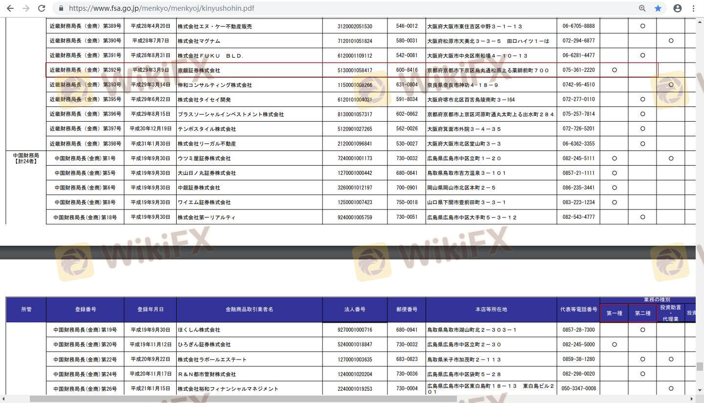 Concernant la légitimité du courtier forex Kyogin Securities, il fournit FSA et (dispose également d'une enquête graphique sur la sécurité).