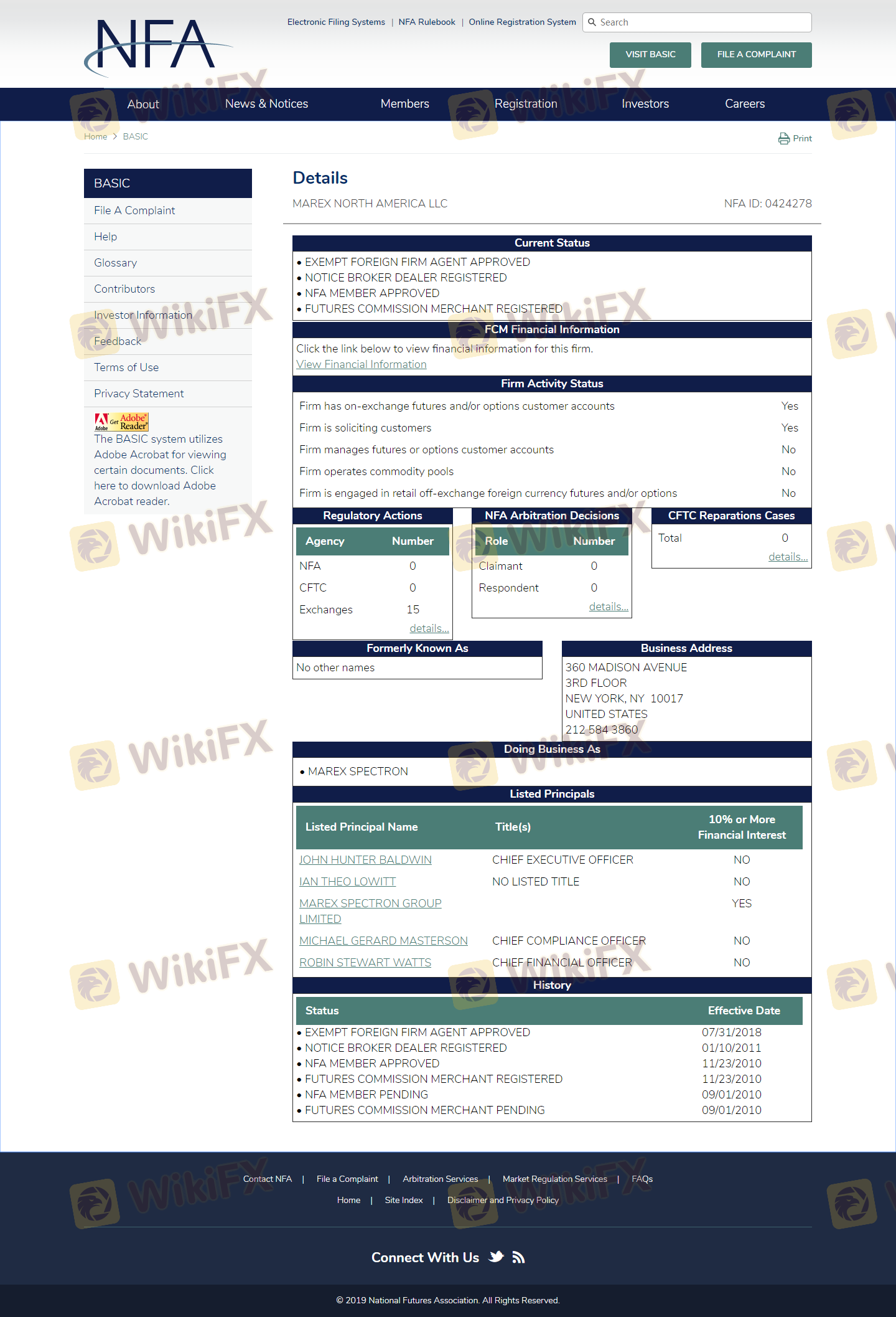 La licence FCA de Marex Spectron signifie qu'elle est soumise à une surveillance rigoureuse, incluant des exigences de fonds propres et des audits réguliers. Cependant, il est à noter que la National Futures Association (NFA) a signalé Marex Spectron en raison d'un problème de conformité qui a entraîné une amende de 250 000 $ pour avoir autorisé des personnes non enregistrées à agir en tant que personnes associées. Cet incident soulève des questions sur l'adhésion du courtier aux normes réglementaires et son engagement en matière de conformité.
