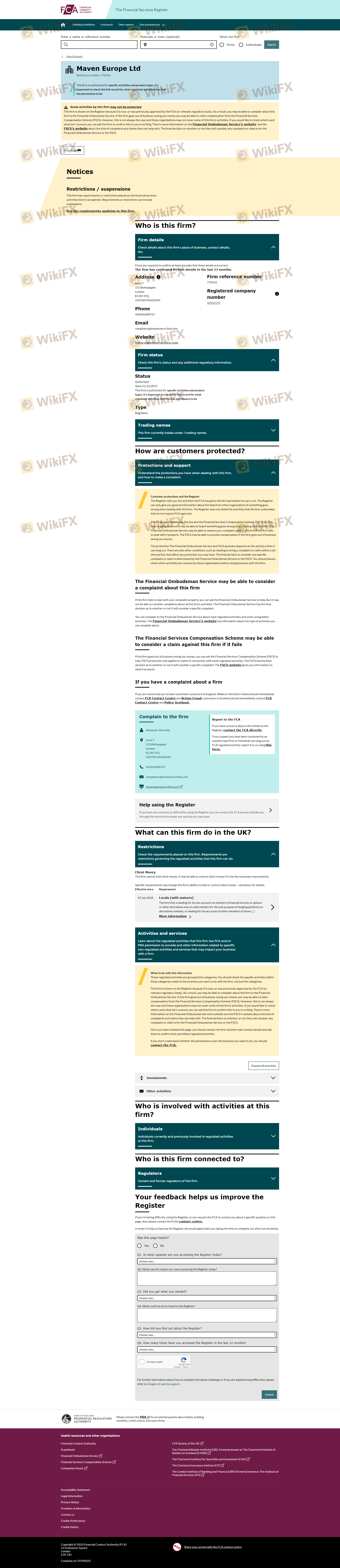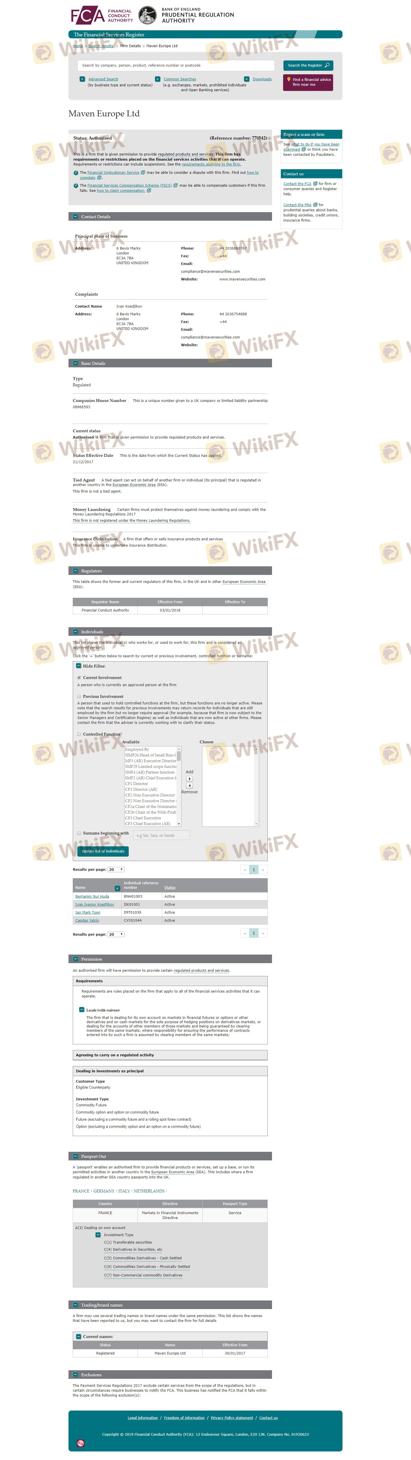 Concernant la légitimité du courtier forex Maven, il fournit FCA et (dispose également d'une enquête graphique sur la sécurité).