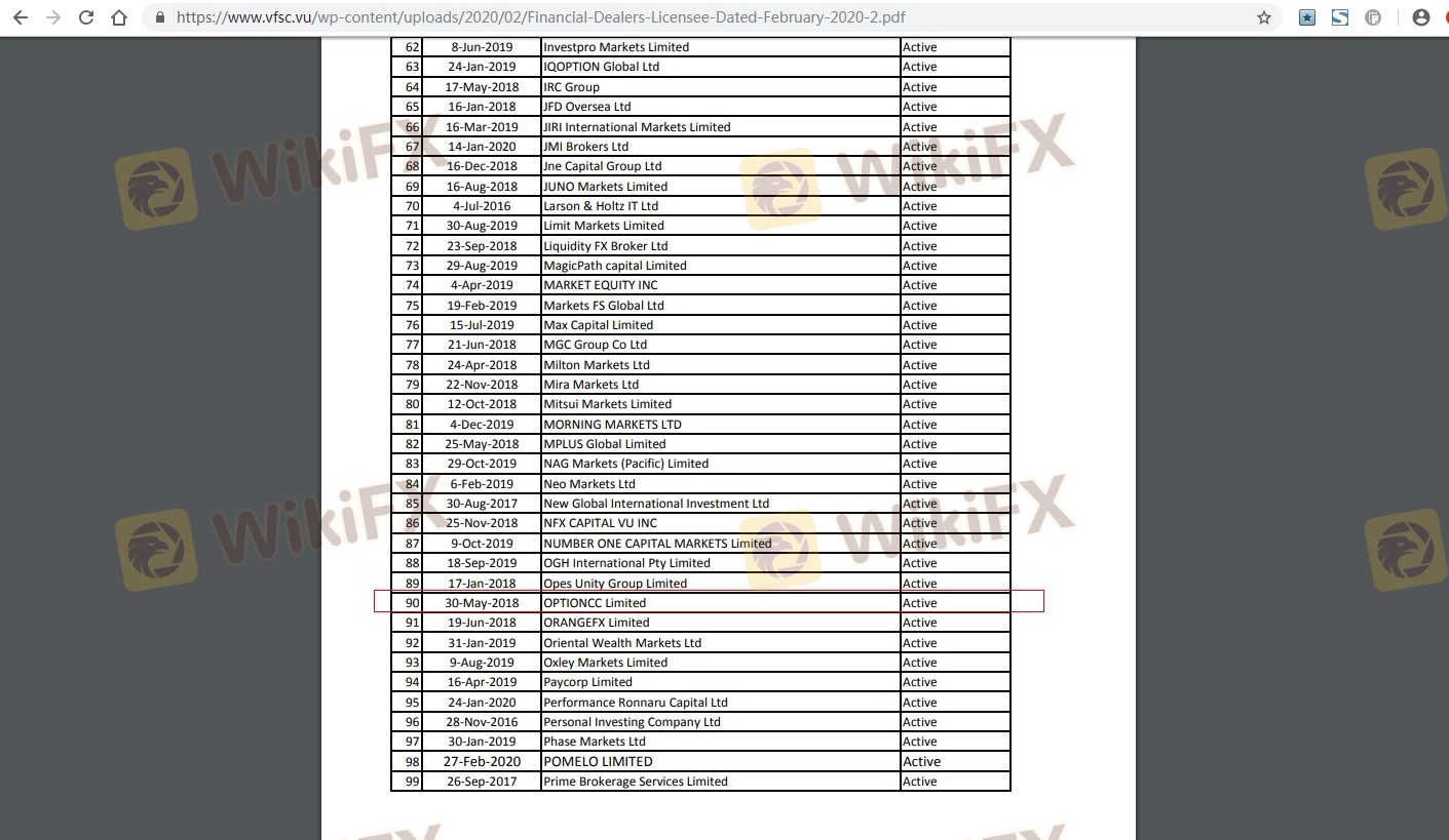 Concernant la légitimité du courtier forex OPTIONCC, il fournit VFSC et .