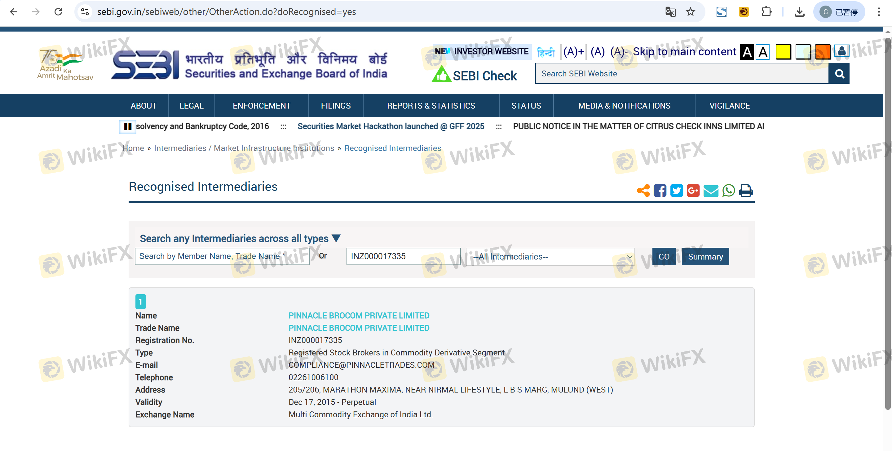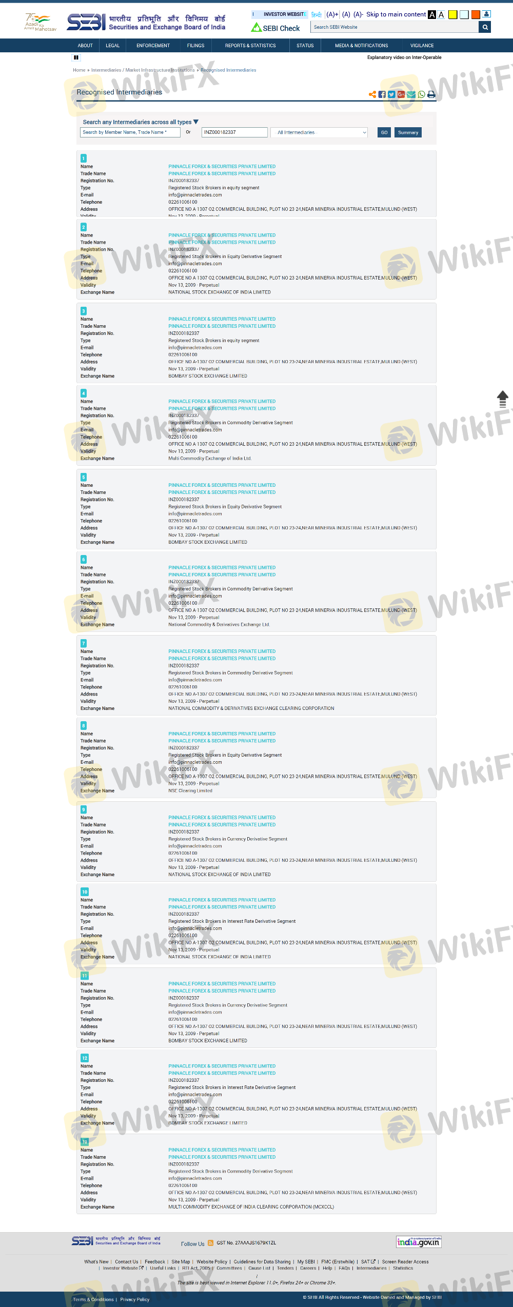 Concernant la légitimité du courtier forex PINNACLE, il fournit SEBI, SEBI et .