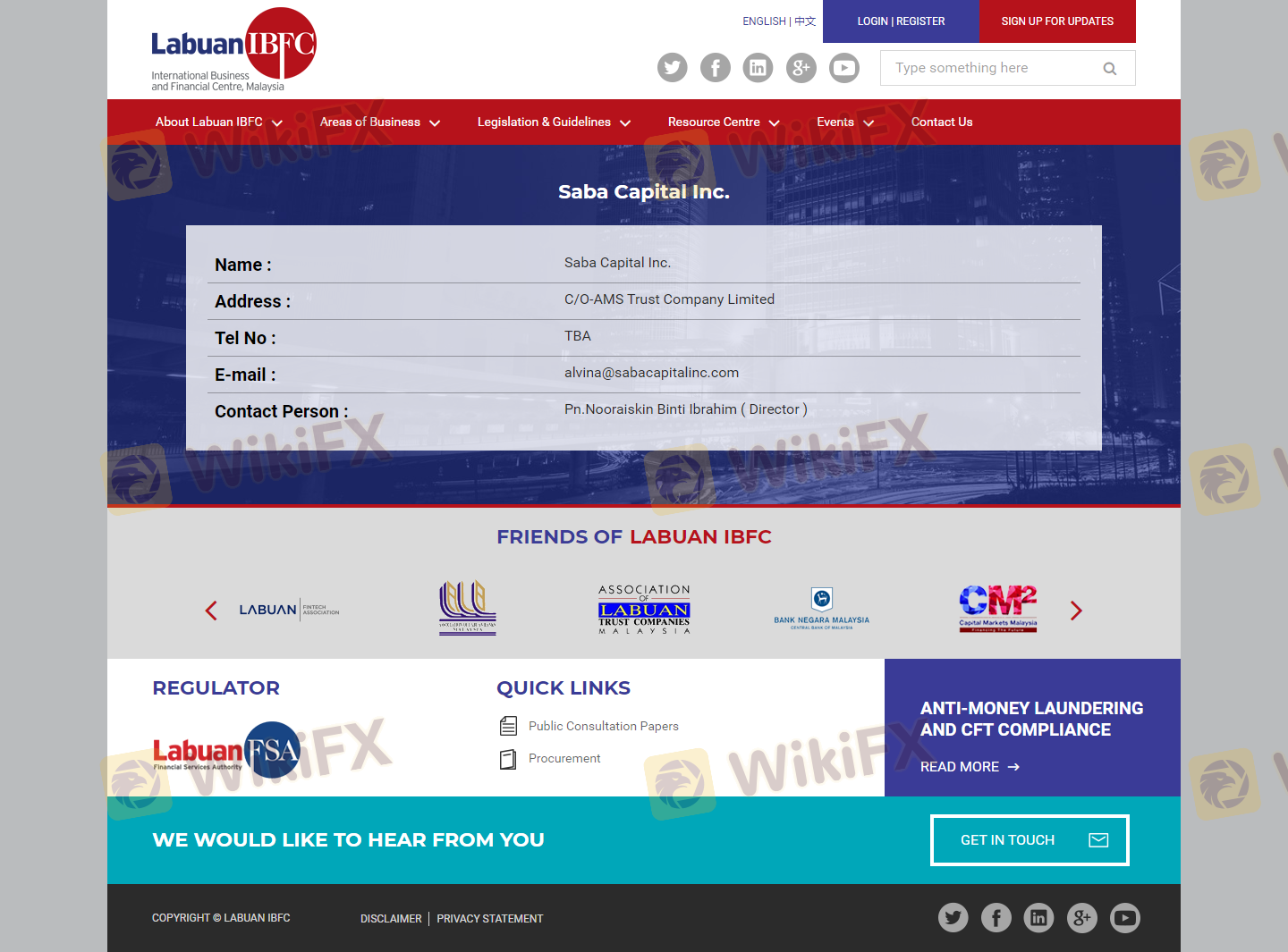 Concernant la légitimité du courtier forex SABA, il fournit LFSA et (dispose également d'une enquête graphique sur la sécurité).