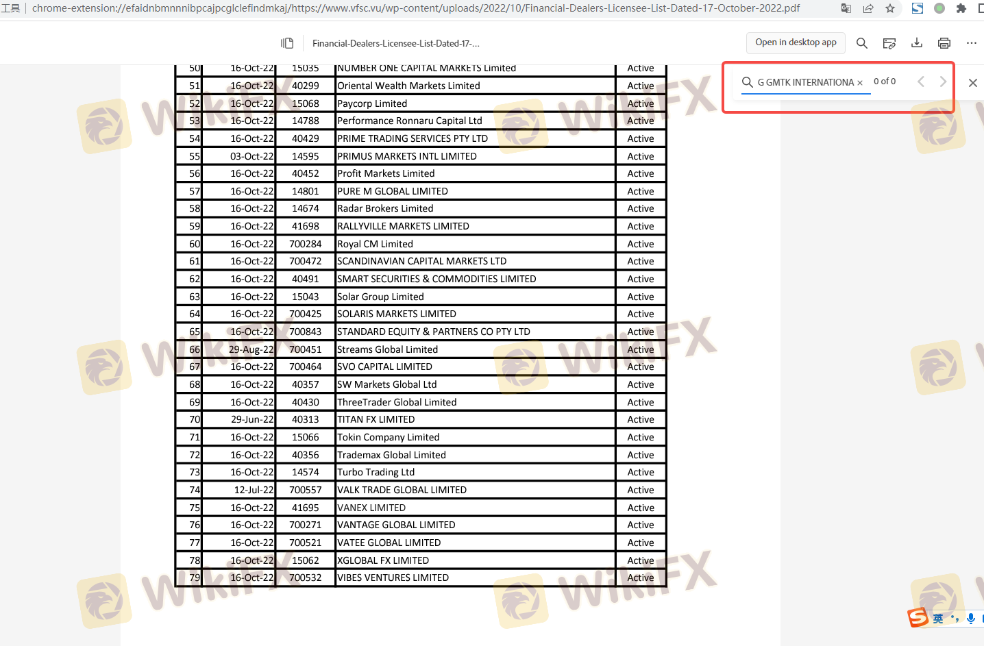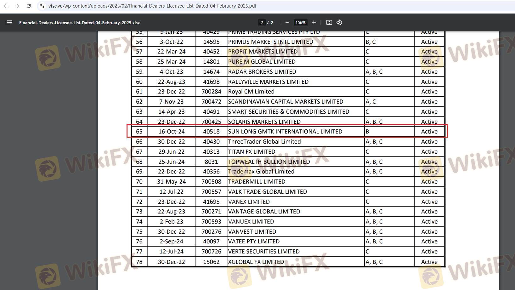 | VFSC | 40518 | Vanuatu | Révoquée |