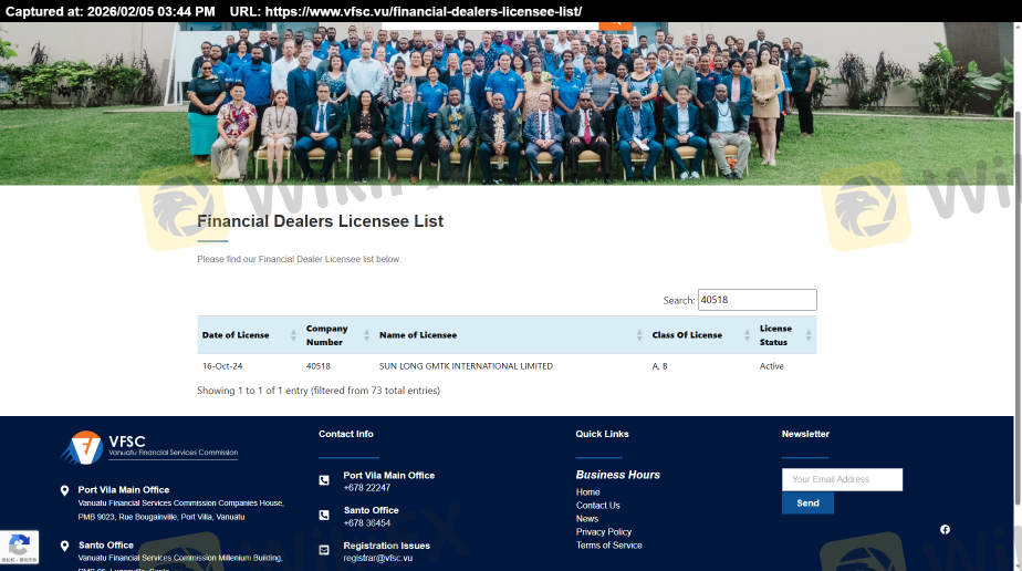 Concernant la légitimité du courtier forex SUN LONG GMTK INTERNATIONAL, il fournit VFSC, ASIC et .