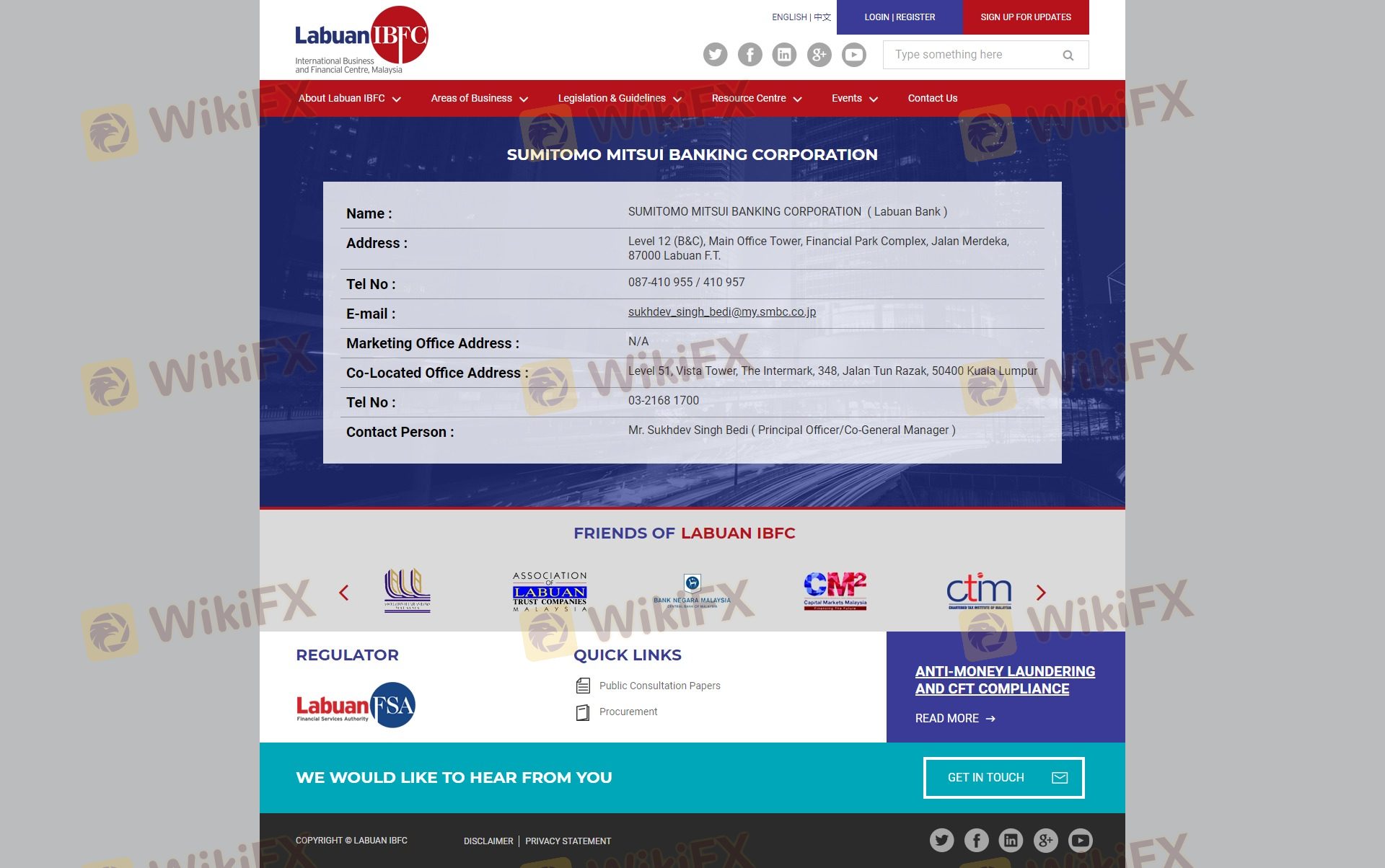 Concernant la légitimité du courtier forex Sumitomo Mitsui, il fournit LFSA et (dispose également d'une enquête graphique sur la sécurité).