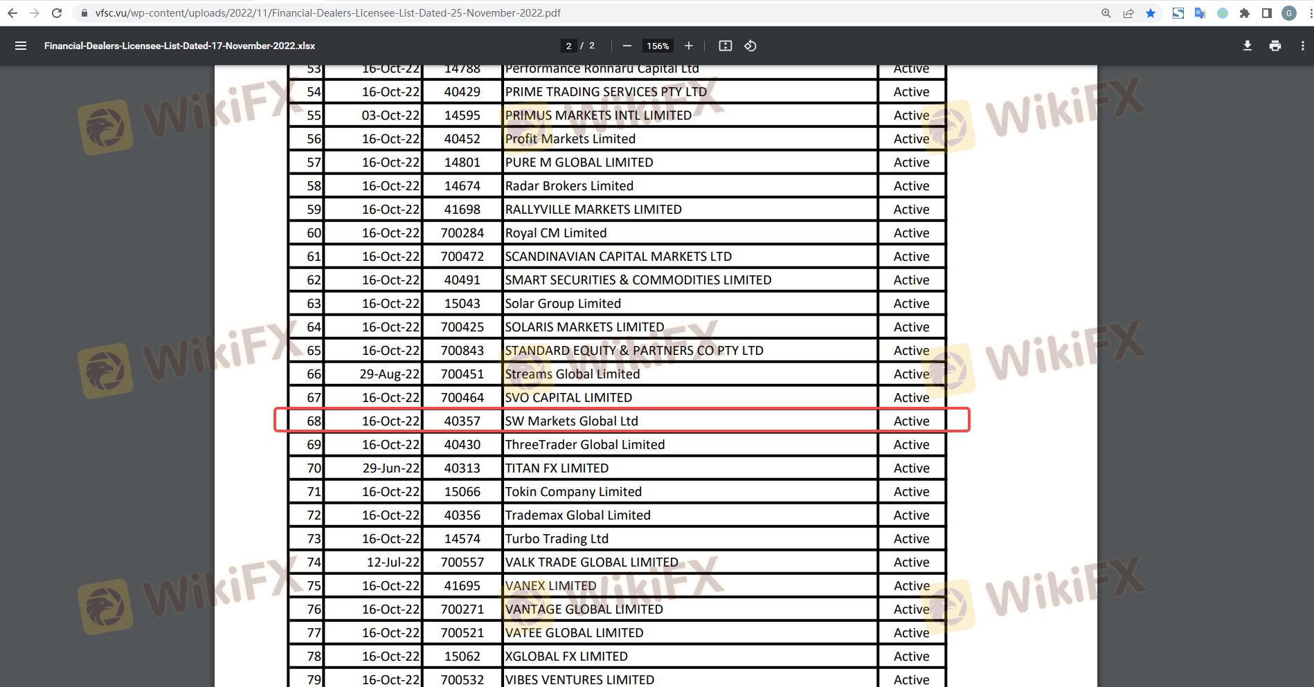 Concernant la légitimité du courtier forex SW MARKETS, il fournit VFSC et .