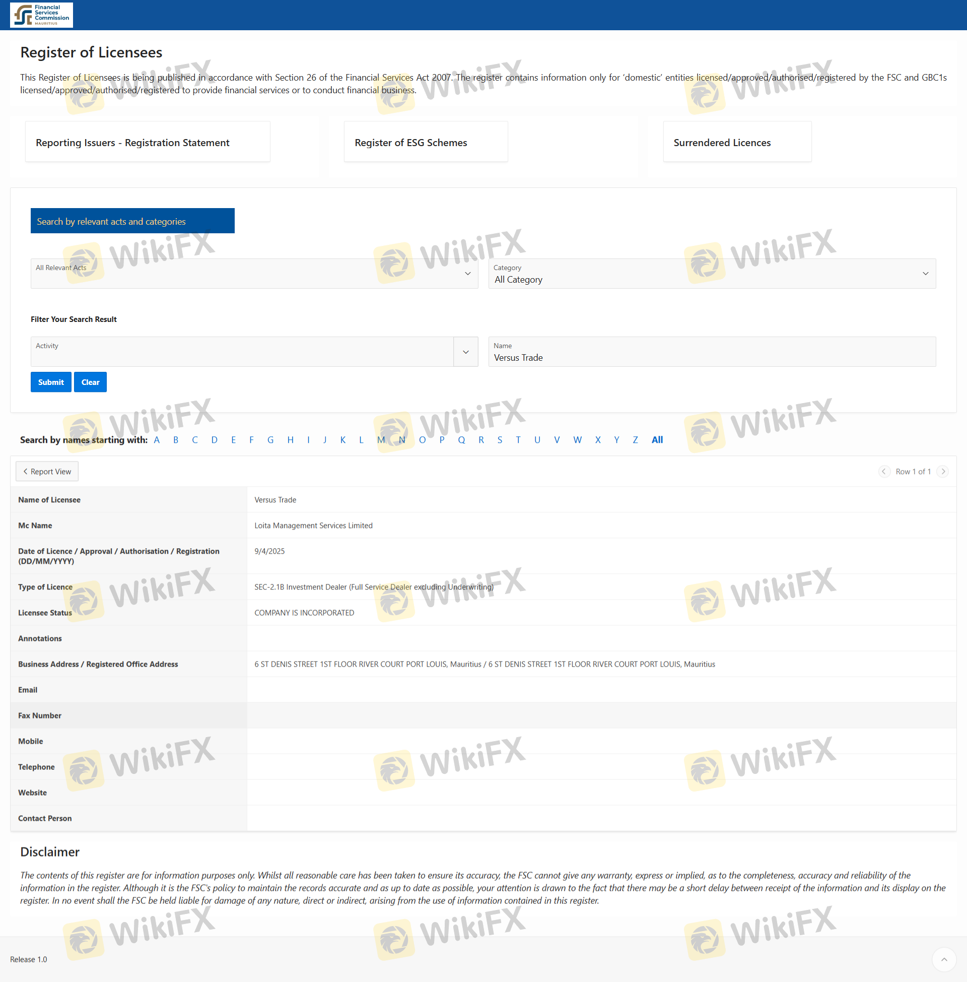 Concernant la légitimité du courtier forex Versus Trade, il fournit FSC et .