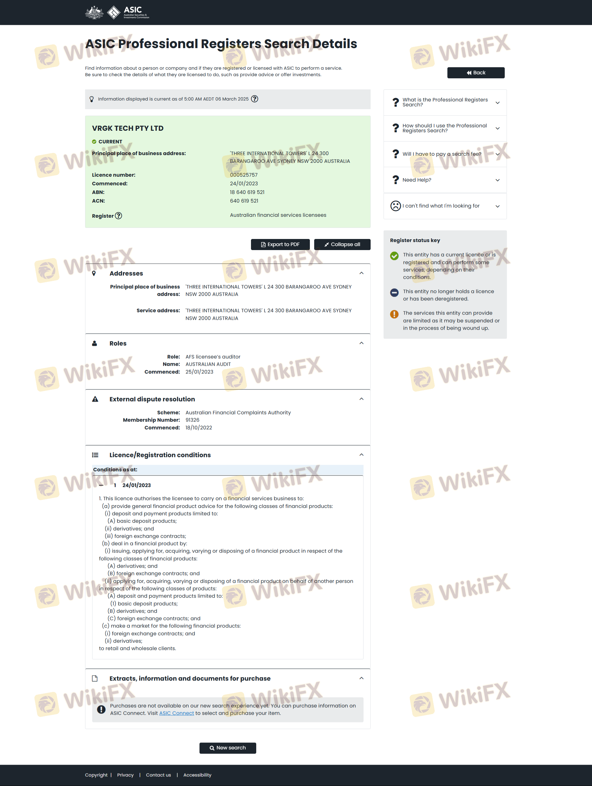 Concernant la légitimité du courtier forex VRGK Tech, il fournit ASIC et .
