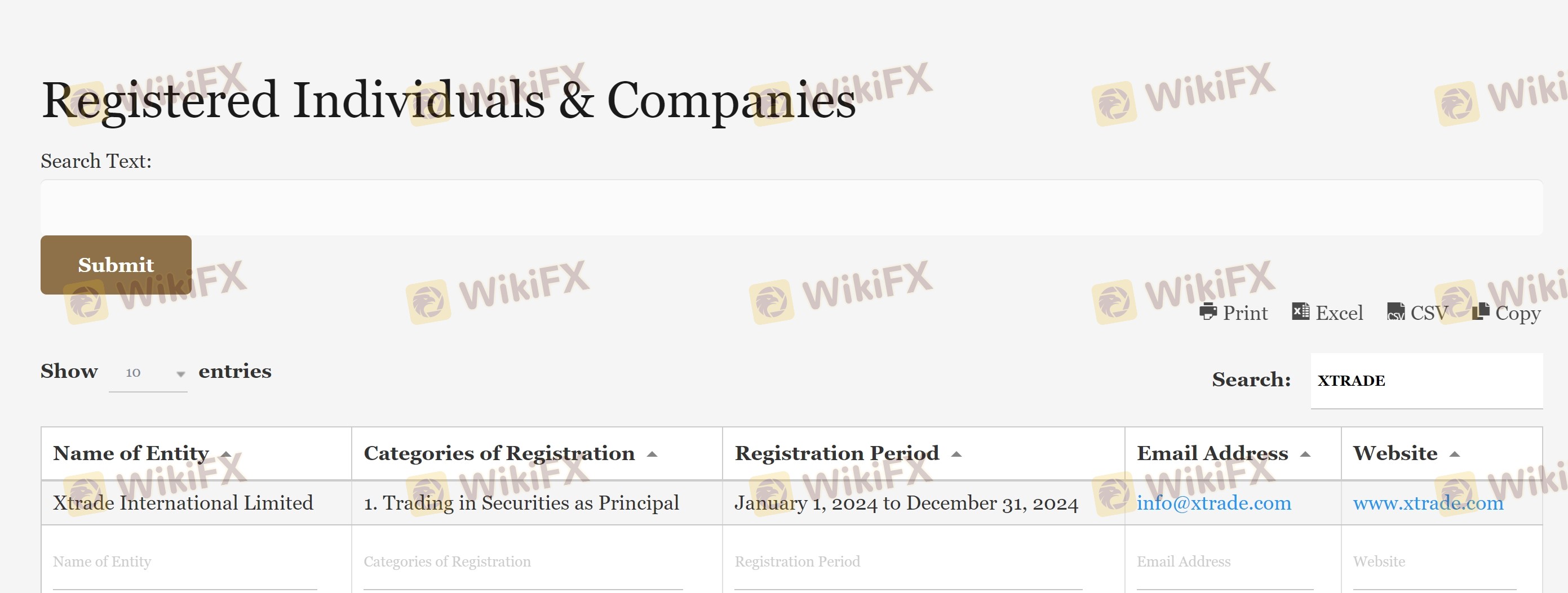 Concernant la légitimité du courtier forex XTRADE, il fournit ASIC, FSC, CYSEC, FSCA et (dispose également d'une enquête graphique sur la sécurité).