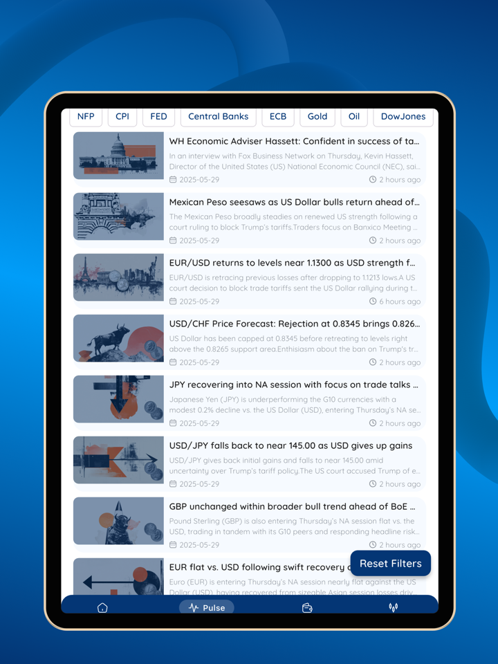 Tetap terinformasi dengan berita pasar terbaru dan fitur analisis yang tersedia di dalam aplikasi untuk membuat keputusan trading yang tepat.