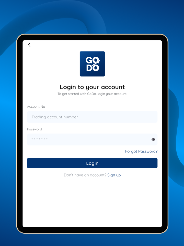 - Luncurkan aplikasi dan masuk dengan akun godo Anda.