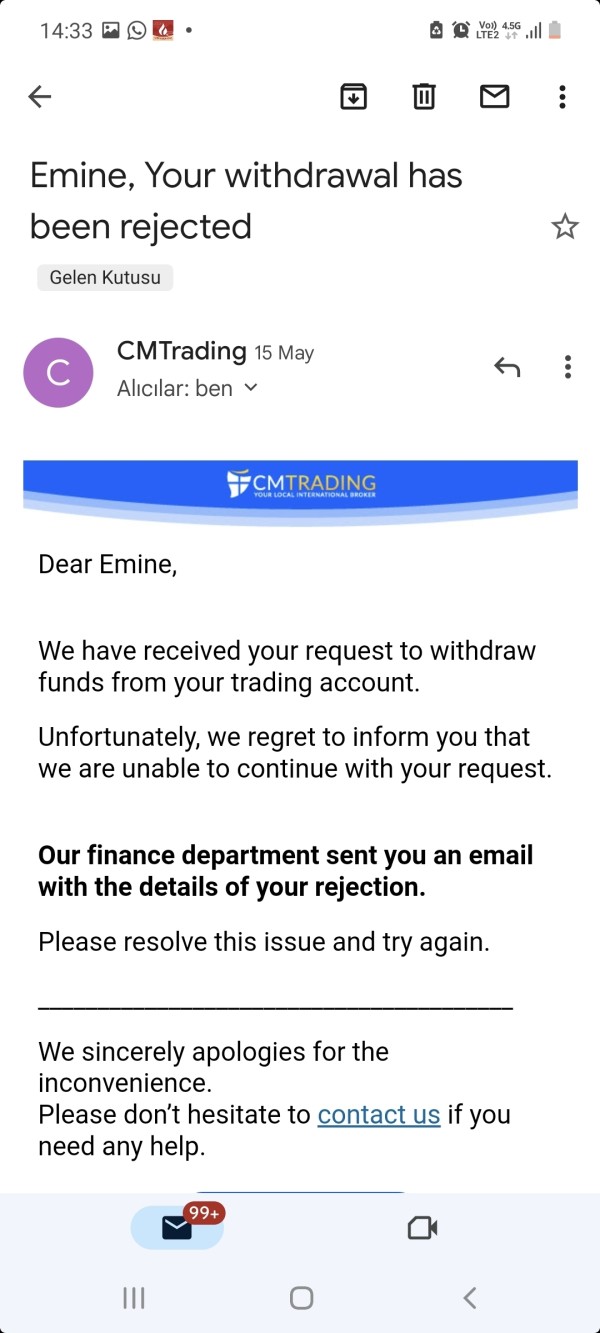 Evaluasi layanan pelanggan untuk CM Trading menunjukkan gambaran yang kompleks berdasarkan umpan balik pengguna yang tersedia dan informasi resmi yang terbatas. Ulasan pengguna menunjukkan pengalaman yang beragam dengan responsivitas dan efektivitas dukungan pelanggan, berkontribusi pada skor moderat dalam kategori ini. Ketidakkonsistenan dalam kualitas layanan tampaknya menjadi tema berulang di antara testimoni trader.