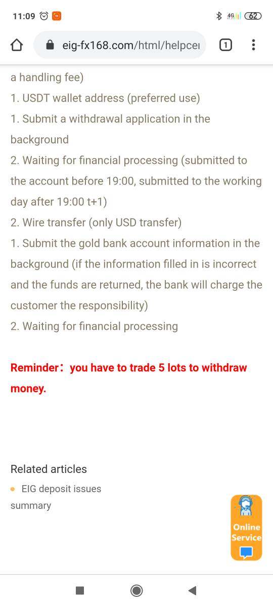 Kurangnya informasi detail tentang kondisi perdagangan, platform, kepatuhan regulasi untuk layanan ritel, dan pengalaman pengguna menghalangi evaluasi menyeluruh terhadap standar industri. Calon klien yang tertarik dengan layanan EIG sebaiknya melakukan penyelidikan langsung untuk mengklarifikasi penawaran yang tersedia, regulasi kepatuhan, dan struktur layanan sebelum membuat keputusan investasi.