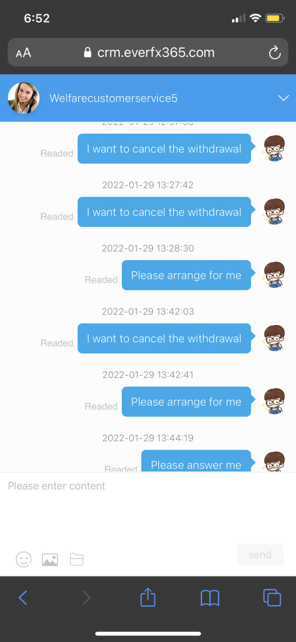 Umpan balik pengguna dan informasi testimonial yang terbatas mencegah penilaian lengkap atas kepuasan pengguna secara keseluruhan terhadap layanan Evergreen Forex. Tidak adanya ulasan pengguna yang terperinci, survei kepuasan, atau umpan balik komunitas membuat sulit untuk mengukur kepuasan pengguna di dunia nyata. pengalaman pengguna.