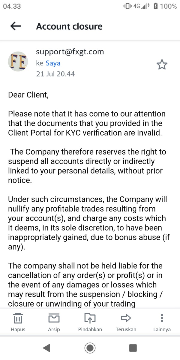 FXGT.com muncul sebagai broker dengan penawaran yang menguntungkan dan kekhawatiran yang signifikan. Meskipun hambatan masuk yang rendah dan berbagai jenis akun menarik para trader, kekhawatiran yang berkelanjutan tentang keamanan dana dan keandalan penarikan tetap ada. Klien potensial disarankan untuk mendekati dengan hati-hati, melakukan evaluasi rinci terhadap pengalaman pengguna dan integritas operasional broker sebelum berinvestasi.