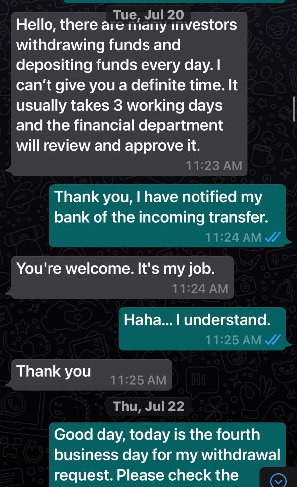 Sebagai kesimpulan, ulasan Hcwh menggambarkan gambaran yang mengkhawatirkan tentang broker yang tidak memiliki pengawasan regulasi dan transparansi yang diperlukan untuk membangun kepercayaan di antara calon investor. Pengguna sangat disarankan untuk mempertimbangkan faktor-faktor ini dengan hati-hati sebelum melanjutkan aktivitas trading melalui platform ini.